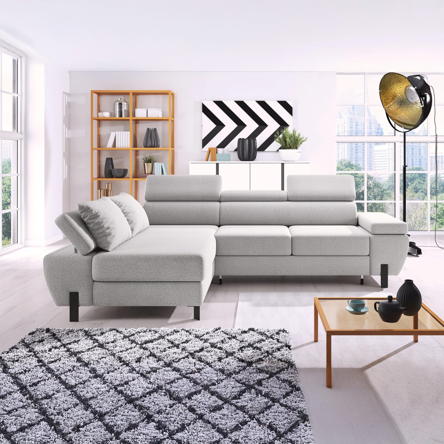 Kampinė sofa „Molina Mini“ kompaktiškoje pakuotėje sujungia eleganciją, modernų dizainą ir funkcionalumą. Su 125 x 210 cm miegojimo funkcija, patalynės dėže ir reguliuojamais galvos bei porankiais, ji garantuoja komfortą ir praktiškumą kasdieniam naudojimui. Tvirta konstrukcija, paremta vingiuotomis spyruoklėmis ir N30 putplasčiu, užtikrina ilgaamžiškumą, o 10 cm metalinės kojelės suteikia lengvumo ir stiliaus.