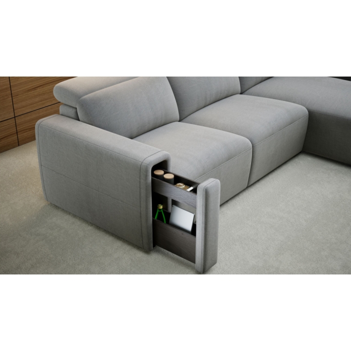 Svarbus privalumas – itališko stiliaus miegojimo funkcija, užtikrinanti stabilų 140 x 200 cm plotą. Įmontuota patalynės lentyna leidžia lengvai susidėti papildomą patalynę, o 48 cm sėdynės aukštis ir 59 cm sėdynės gylis užtikrina patogų kasdienį naudojimą. Tai leidžia kampinei sofai atlikti ir poilsio, ir pilno dydžio lovos funkciją.