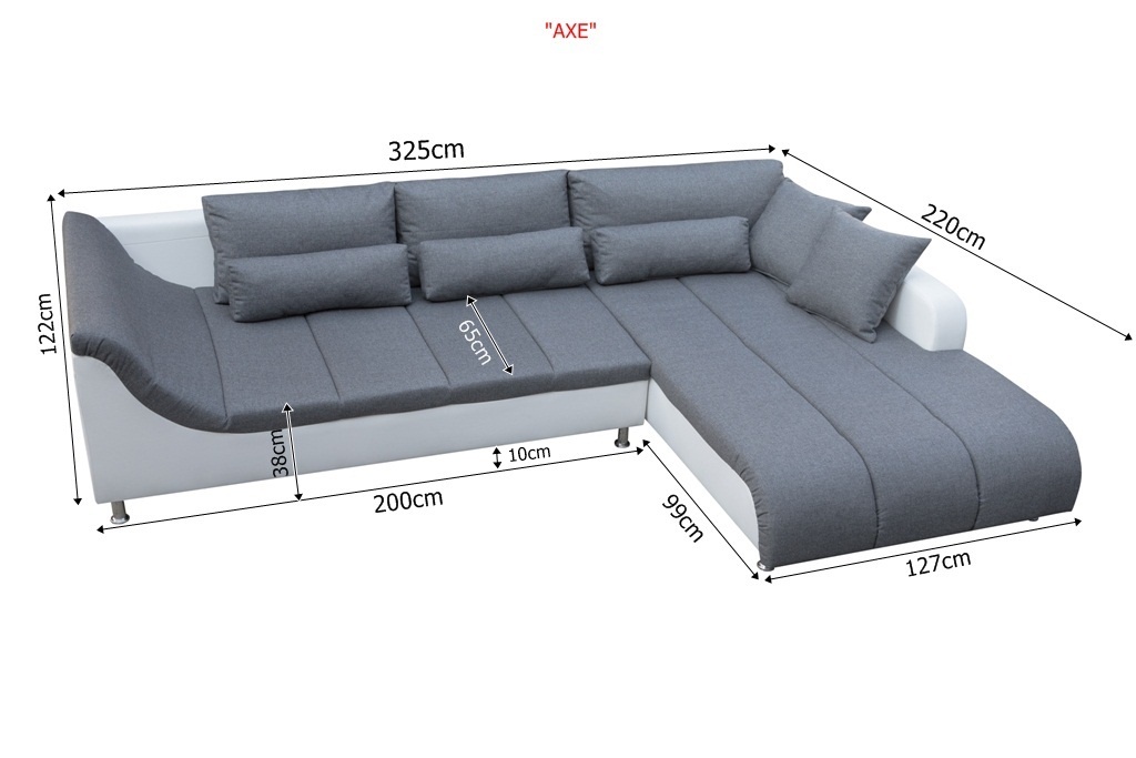 Stacionari kampinė sofa „Axe“ pasižymi elegancija ir aukšta kokybe, nes joje naudojamos modernios gamybos technologijos ir aukštos kokybės apmušalų medžiagos.