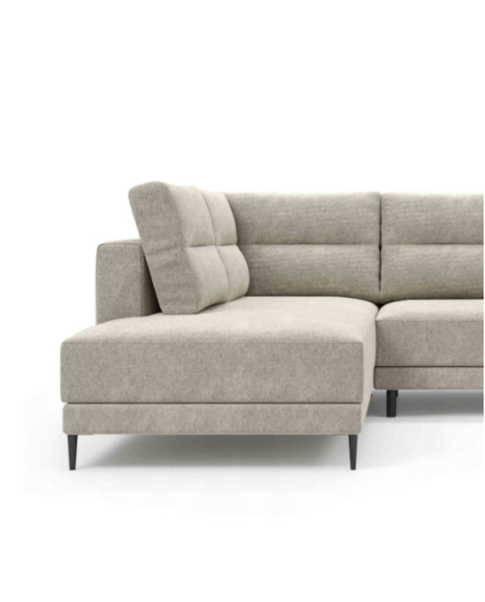 „Nordic Closed Corner Sofa“ – tai modulinė kampinė sofa iš Lenkijos gamintojo „Comforteo“, sukurta šviesioms, uždaroms erdvėms. Ji išlaiko minimalistinį dizainą su geometrinėmis siūlėmis ant apmušto galvūgalio ir šoninių panelių, išlikdama subtili, tačiau išraiškinga. Ji puikiai dera prie modernaus ir skandinaviško interjero.