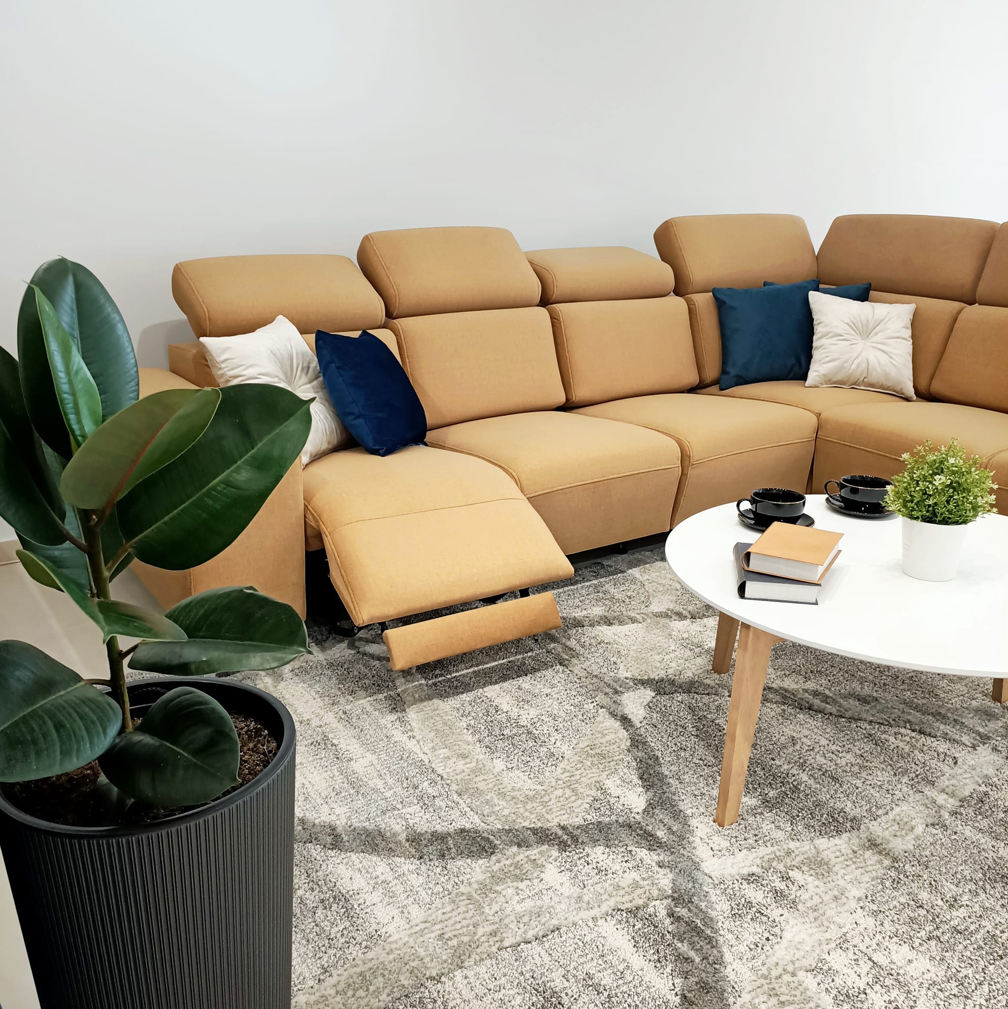 „Oviedo“ kampinė sofa pasižymi paprastumu, moderniu ir elegantišku dizainu. Paprasta forma ir gerai paminkštintas vidus paverčia ją puikiu baldu poilsiui. Subtilus chromuotas paviršius suteikia elegancijos ir modernumo. Papildomas šios kampinės sofos privalumas – aukštos kojelės. Specifikacijos: - Universalus išdėstymas, - Elektrinė atsipalaidavimo funkcija, - Reguliuojamos galvos atramos, - „Cavalry“ spyruoklės, - Didelio elastingumo putos, - Aukštos metalinės kojelės.