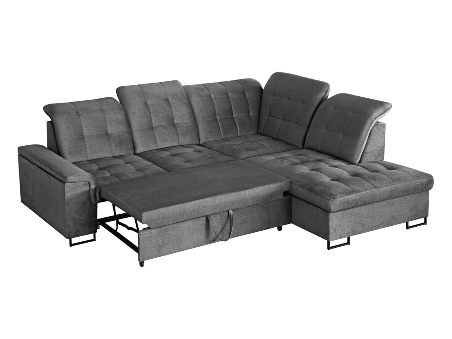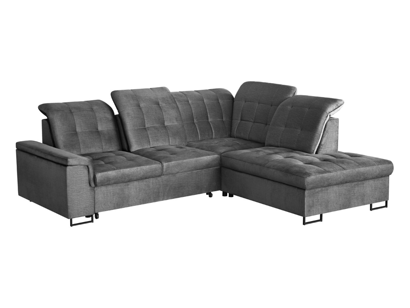 Dešinioji kampinė sofa „Aragon“, sulankstoma, su reguliuojamu galvos atlošu ir sėdyne, pilka