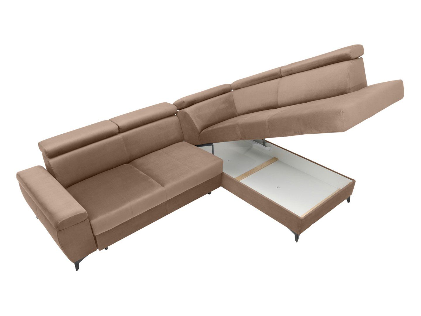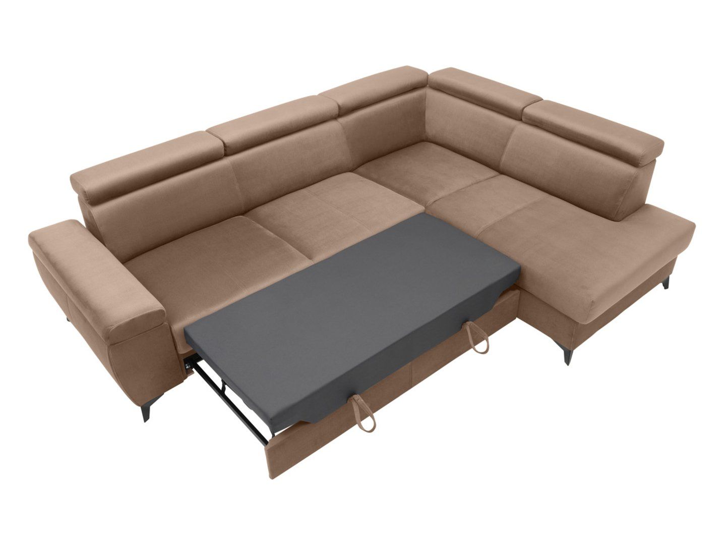 „Mellow“ kampinė sofa – erdvė visai šeimai. Gražiuose ir harmoninguose namuose stilingi baldai vaidina pagrindinį vaidmenį, o didelė „Mellow“ kampinė sofa taps jūsų poilsio zonos traukos centru. Jos rafinuotas dizainas suteikia žavesio interjerui ir užtikrina neįtikėtiną komfortą. Ši moderni kampinė sofa su miegojimo funkcija traukia dėmesį ne tik savo išvaizda, bet ir praktiškumu. Nepaisant įspūdingų matmenų (276 x 205 cm), baldas neužgožia erdvės dėl elegantiškų, pakeltų juodo metalo kojelių. Jos ne tik suteikia stiliaus, bet ir palengvina kampinės sofos tvarkos palaikymą. Didesni sofos matmenys paverčia ją puikia vieta atsipalaiduoti visai šeimai ar svečiams. Vakarais leisti laiką kartu, kalbantis ar žiūrint filmus, tampa dar maloniau, ypač dėl vingiuotų spyruoklių ir putplasčio panaudojimo sėdynėje ir atloše, kurie suteikia išskirtinį komfortą. Kontūruotos atlošai ir reguliuojamos galvos atramos leidžia pritaikyti baldus individualiems kiekvieno namų ūkio nario poreikiams. Papildomas reguliuojamas porankis padidina „Mellow“ kampinės sofos funkcionalumą, prisitaikant prie įvairių pageidavimų. Naktį kampinė sofa transformuojasi į patogią lovą su vienodu 129 x 210 cm miegojimo paviršiumi. Čiužinys, kaip ir sėdynė, pasižymi vingiuotomis spyruoklėmis ir putomis. Didelis patalynės skyrius leidžia lengvai susidėti papildomus daiktus. „Mellow“ kampinė sofa tiekiama dešinės, tiek kairės pusės versijomis, todėl galite pasirinkti tobulą variantą savo interjerui. Mėgaukitės patogia poilsio zona, kuri taps mėgstama visos šeimos vieta. Pagrindinės savybės: klasikinio stiliaus baldai, tiekiami dešinės, tiek kairės pusės versijomis. Kontūruota atlošo dalis su reguliuojamomis galvos atramomis. Platūs, reguliuojami porankiai. Didelė, patogi sėdynė su atvira otomane. Vingiuotos spyruoklės sėdynėje ir čiužinyje suteikia patogų paviršių. Didelis patalynės skyrius didesniam daiktų laikymo plotui. Pakeltos kojelės, kad būtų lengviau pasiekti grindis valymo metu. Juodos metalinės kojelės suteikia dizainui lengvumo.