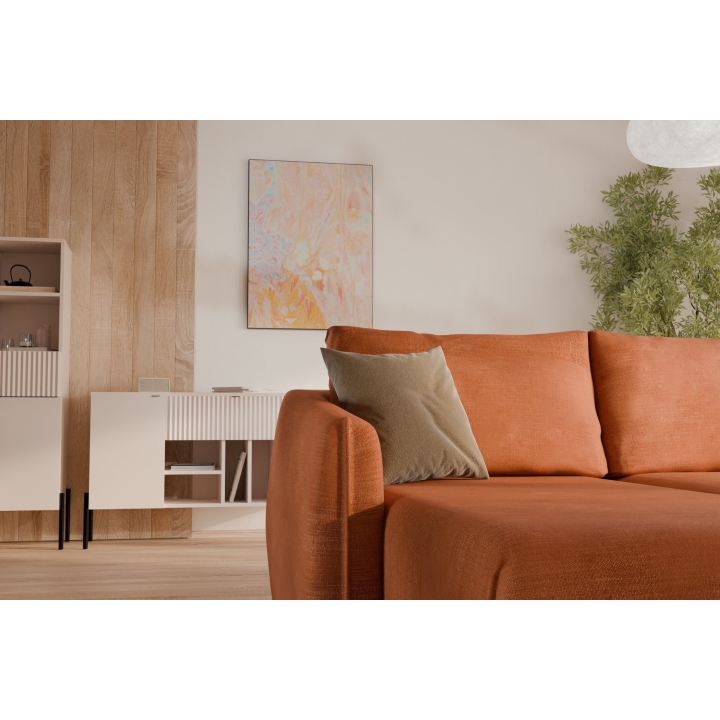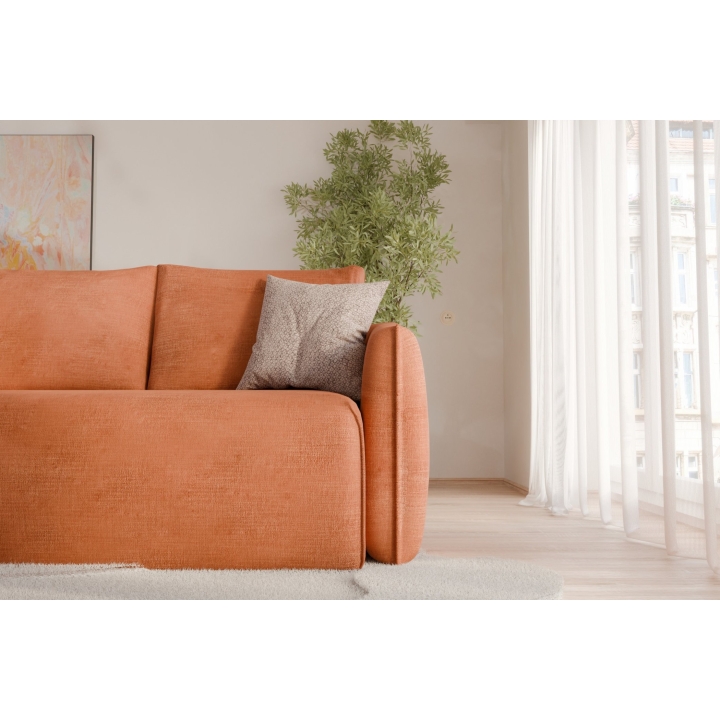 Po sėdyne yra 133 x 67 x 19 cm dydžio patalynės skyrius, kuriame galite laikyti antklodes, pagalves ar lovatieses. Taip jūsų svetainė išliks tvarkinga, o reikalingi daiktai visada bus ranka pasiekiami. Aukštos kokybės audinio užvalkalas malonus liesti ir lengvai valomas.