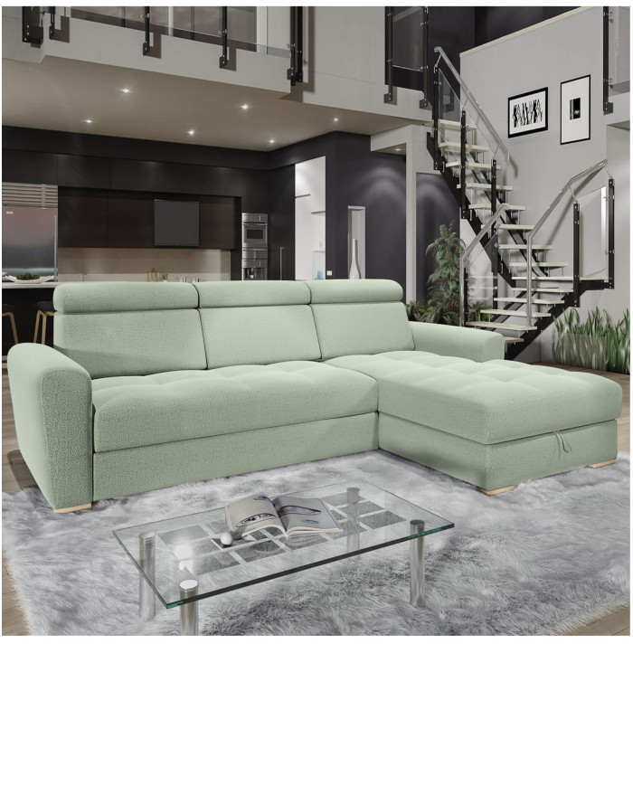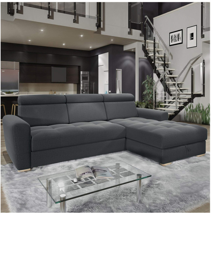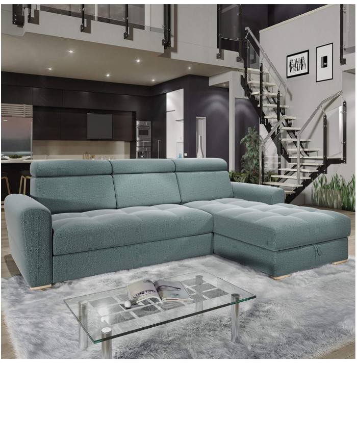 Modulinė kampinė sofa „Riva Open V2+V3+V5“ turi reguliuojamas galvos atramas, kurios kartu su išlenktomis atlošais leidžia rasti patogiausią ir individualiausią padėtį. Sėdynės pagalvėlės su vingiuotomis spyruoklėmis ir didelio elastingumo HR poliuretano putomis yra ne tik patvarios, bet ir labai patogios. Sofa turi praktišką patalynės dėžę ir „Dolphin“ miegojimo funkciją. Ši daugiafunkcinė kampinė sofa yra kairės ir dešinės rankos versijos. Ją galima įsigyti iš plataus audinių asortimento, kurį siūlo gaminio kūrėjas. Surinkimas reikalauja minimalaus darbo.