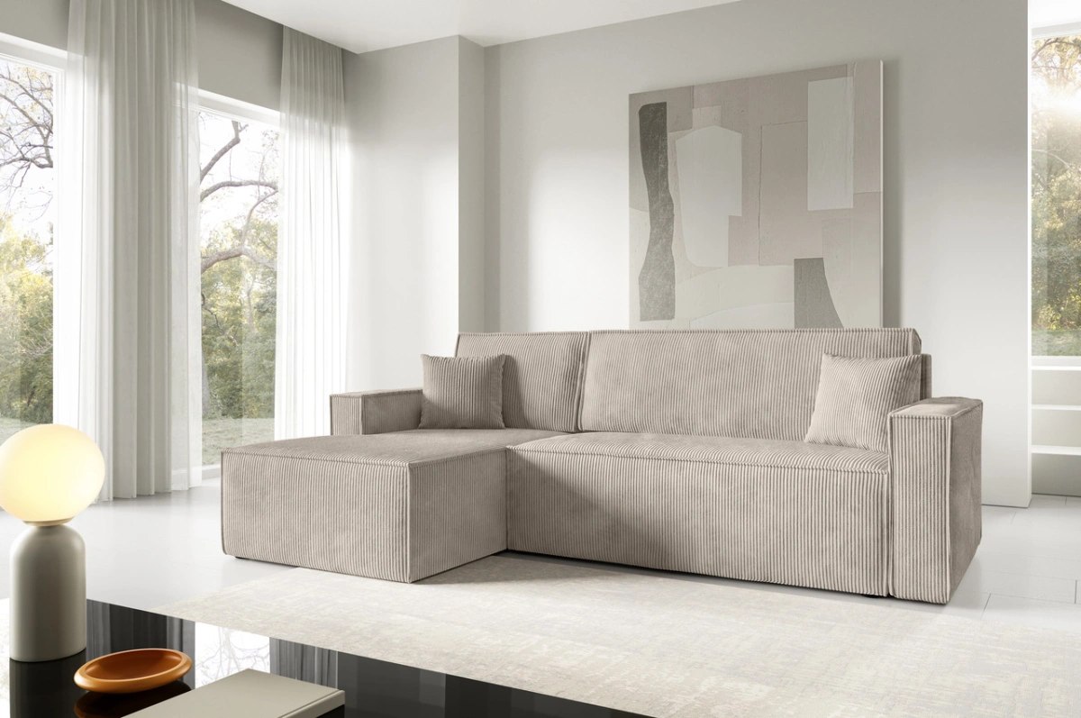 Palyginti Išskleidžiama kampinė sofa „Artur“ – tai avangardinio stiliaus svetainės baldas, kurio formos traukia akį ir yra išskirtinai originalios dėl unikalaus dizaino.