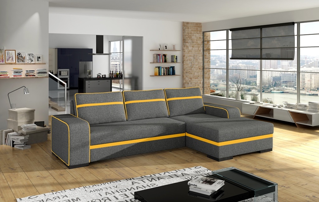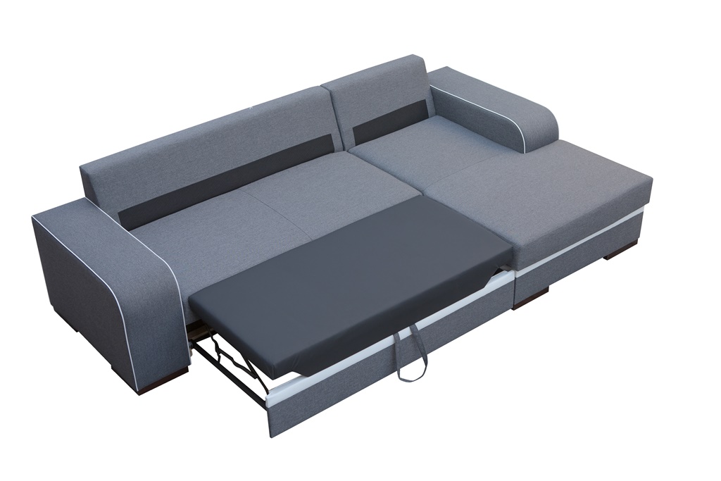 Išskleidžiama kampinė sofa „Finn“ – praktiškas poilsio baldas. Dėl patalynės laikymo vietos ir didelio miegojimo ploto, išlaikant kompaktišką dydį, ji tinka net ir mažam svetainės kambariui, leisdama patogiai atsipalaiduoti dienos metu ir gerai išsimiegoti naktį.