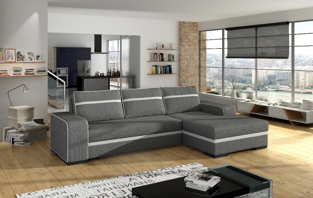 Išskleidžiama kampinė sofa turi patalynės dėžę