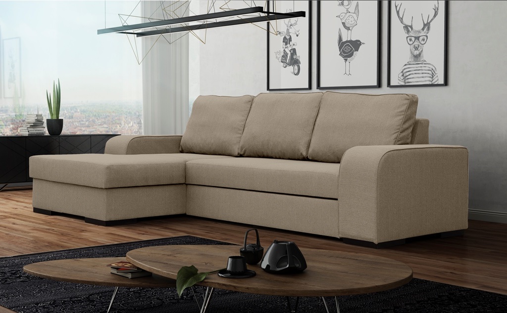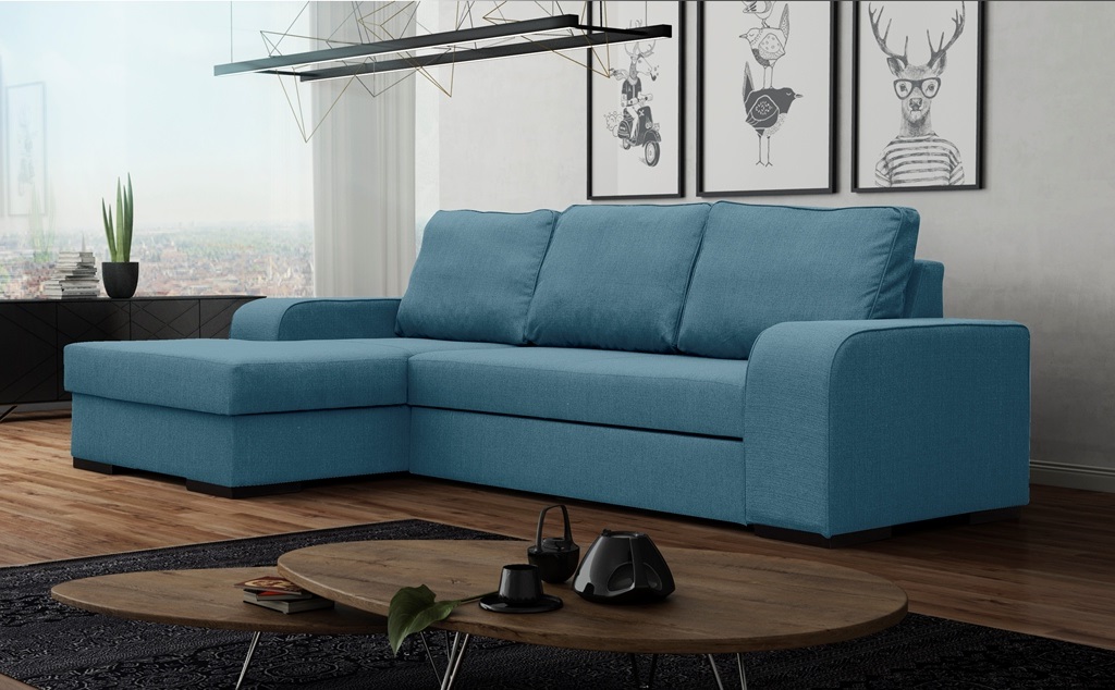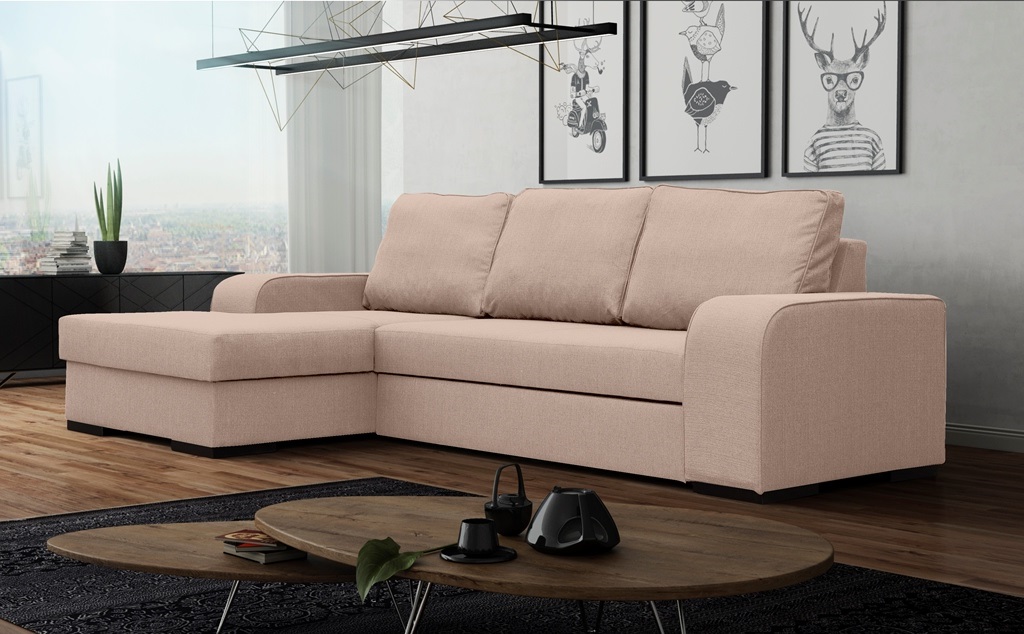 „Frugo“ išskleidžiama kampinė sofa – tai baldas, kuris dėl plataus audinių spalvų pasirinkimo prisitaikys prie bet kokios aplinkos.