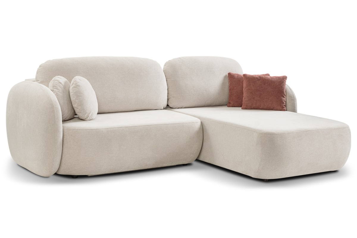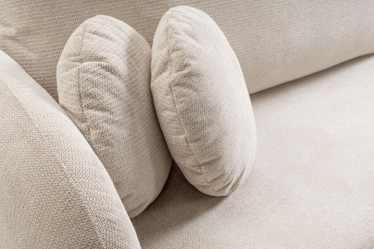„Olio“ kampinė sofa pasižymi aptakiomis formomis ir standartiškai komplektuojama su dviem mažomis apvaliomis pagalvėlėmis.