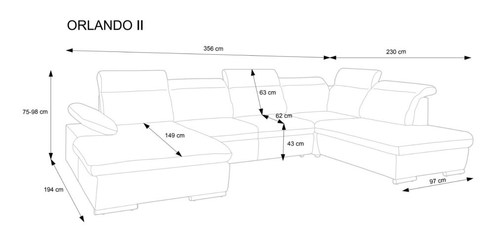 Kampinė sofa „Orlando II“, pasižyminti unikaliu dizainu ir originalia forma, neabejotinai taps bet kurio svetainės akcentu.