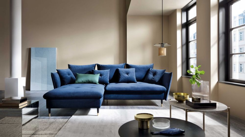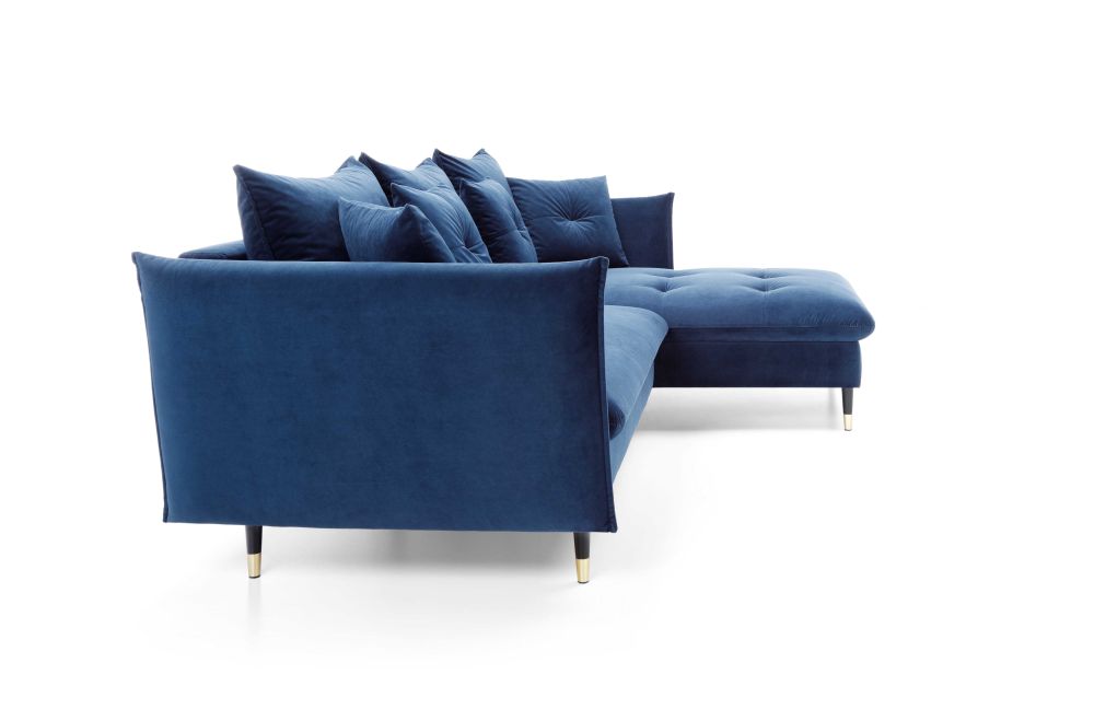 „Glam“ kampinė sofa, pasižyminti unikaliu dizainu ir originalia forma, neabejotinai taps bet kurio svetainės akcentu.