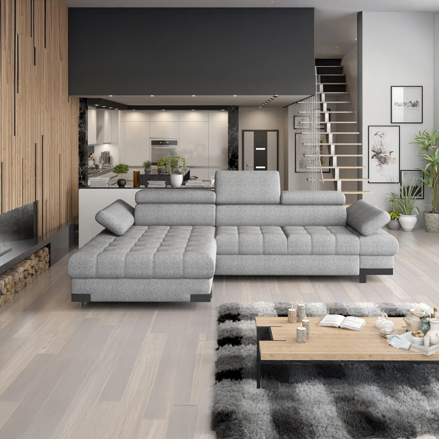 Kampinė sofa „Selva Mini“ – tai puikus modernaus dizaino, komforto ir funkcionalumo derinys kompaktiškoje formoje. Dėl elegantiškų linijų, aukštos kokybės medžiagų ir praktiškų savybių ji puikiai tiks tiek moderniame, tiek klasikiniame interjere. Su miegojimo funkcija (122 x 216 cm) ir patalynės skyriumi (164 x 95 x 15 cm), tai puikus sprendimas tiems, kurie vertina stilių ir komfortą viename.