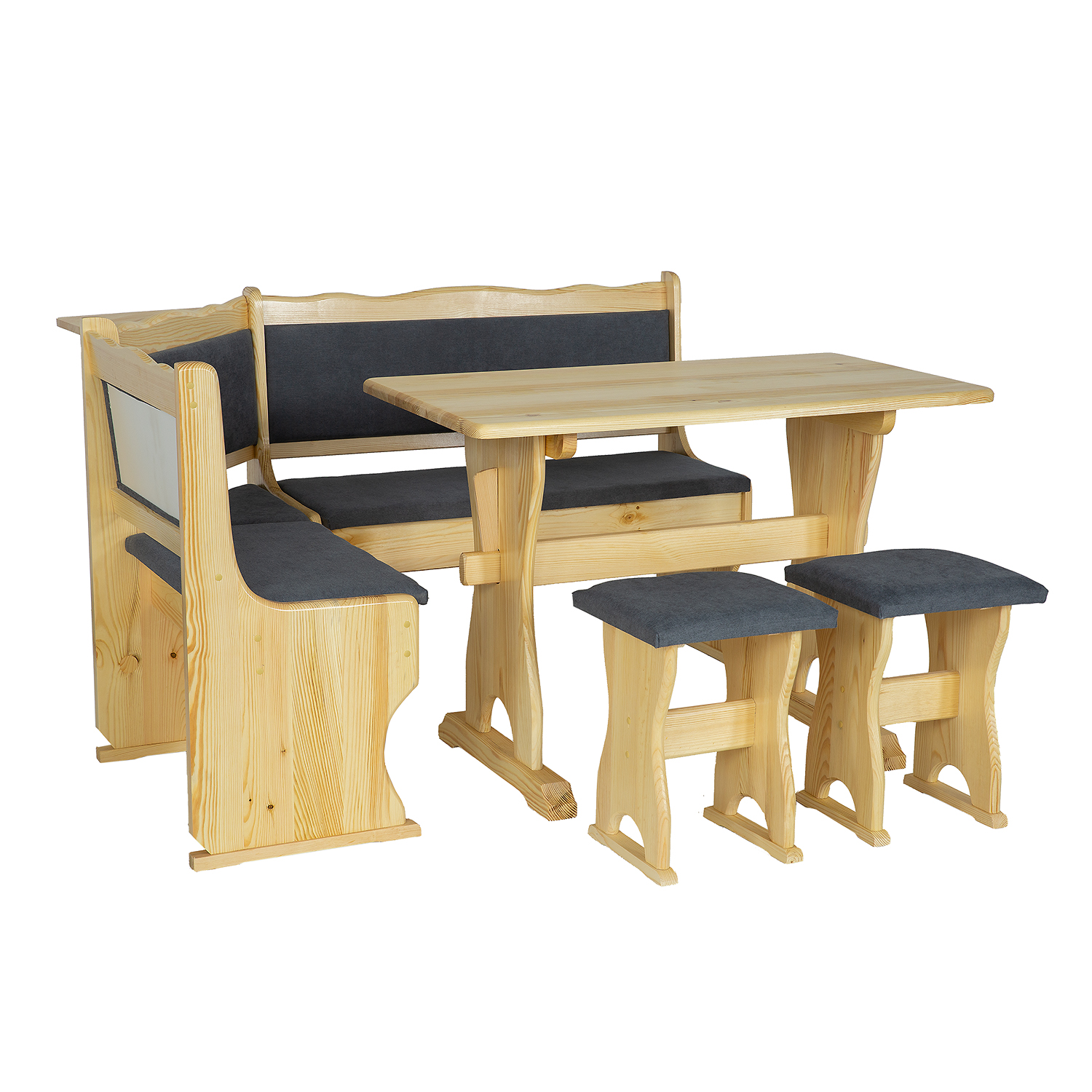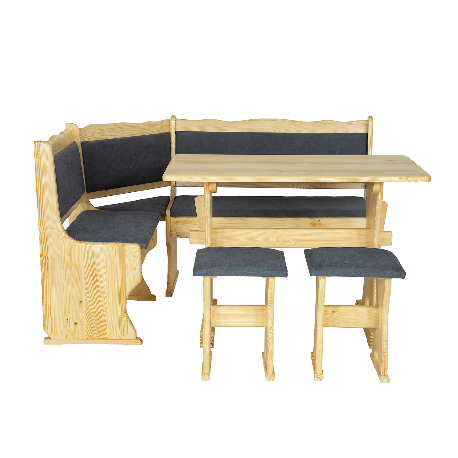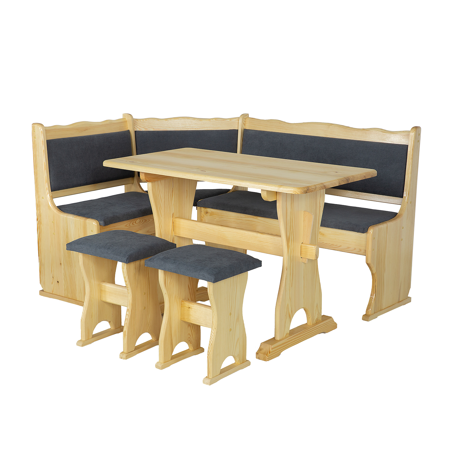 Tradicinio, paprasto dizaino pušinė kampinė sofa NR107 puikiai papildys tradiciniu stiliumi dekoruotą virtuvę ar valgomąjį. Ši kampinė sofa sukurta tiems, kurie vertina klasikinius ir funkcionalius baldus. Minkšta, šviesi sėdynės ir atlošo apdaila suteikia komforto. Kartu su stalu (ST103) ir papildomais šios kolekcijos taburetėmis (NR115) galite sukurti komplektą, kuriame tilps dar daugiau svečių.