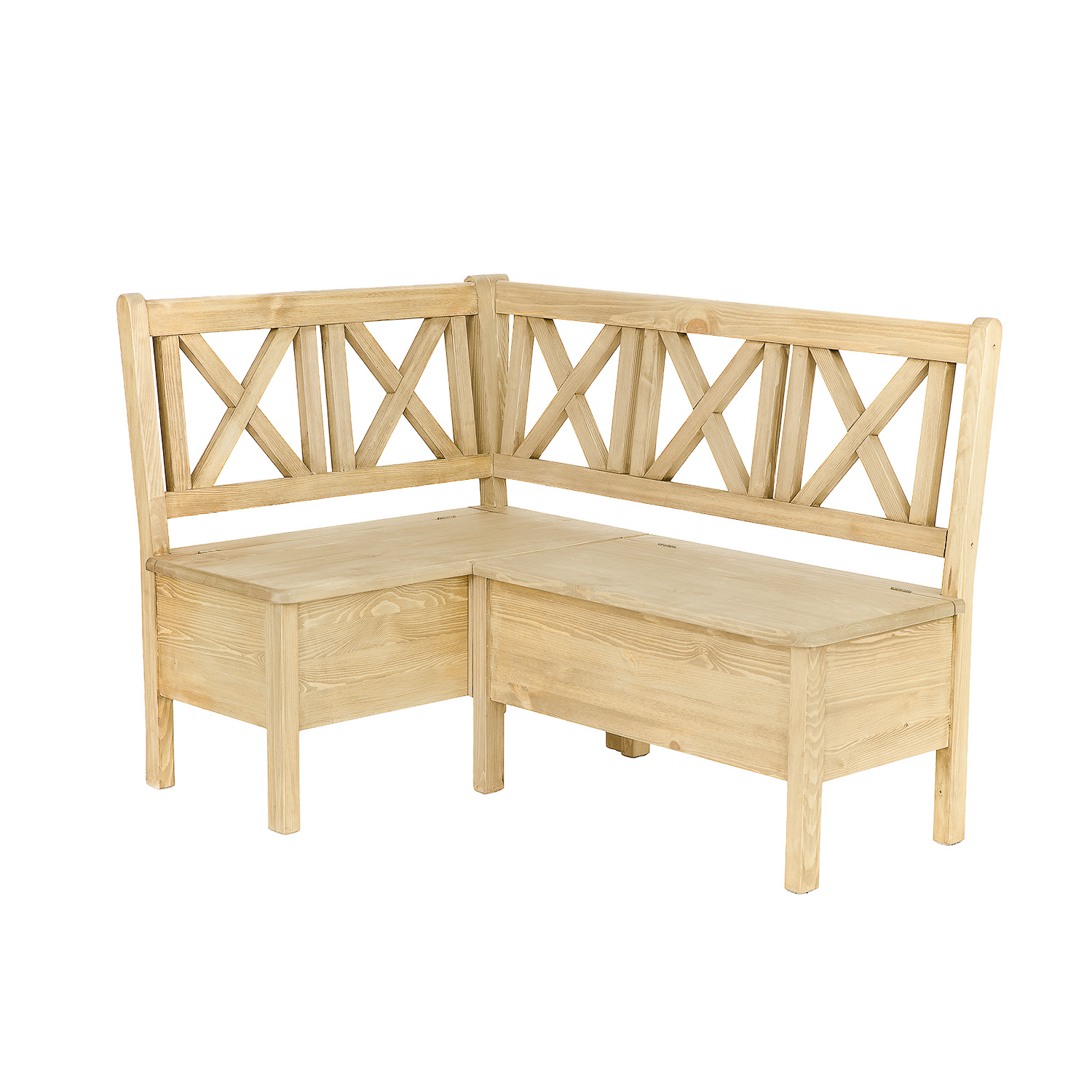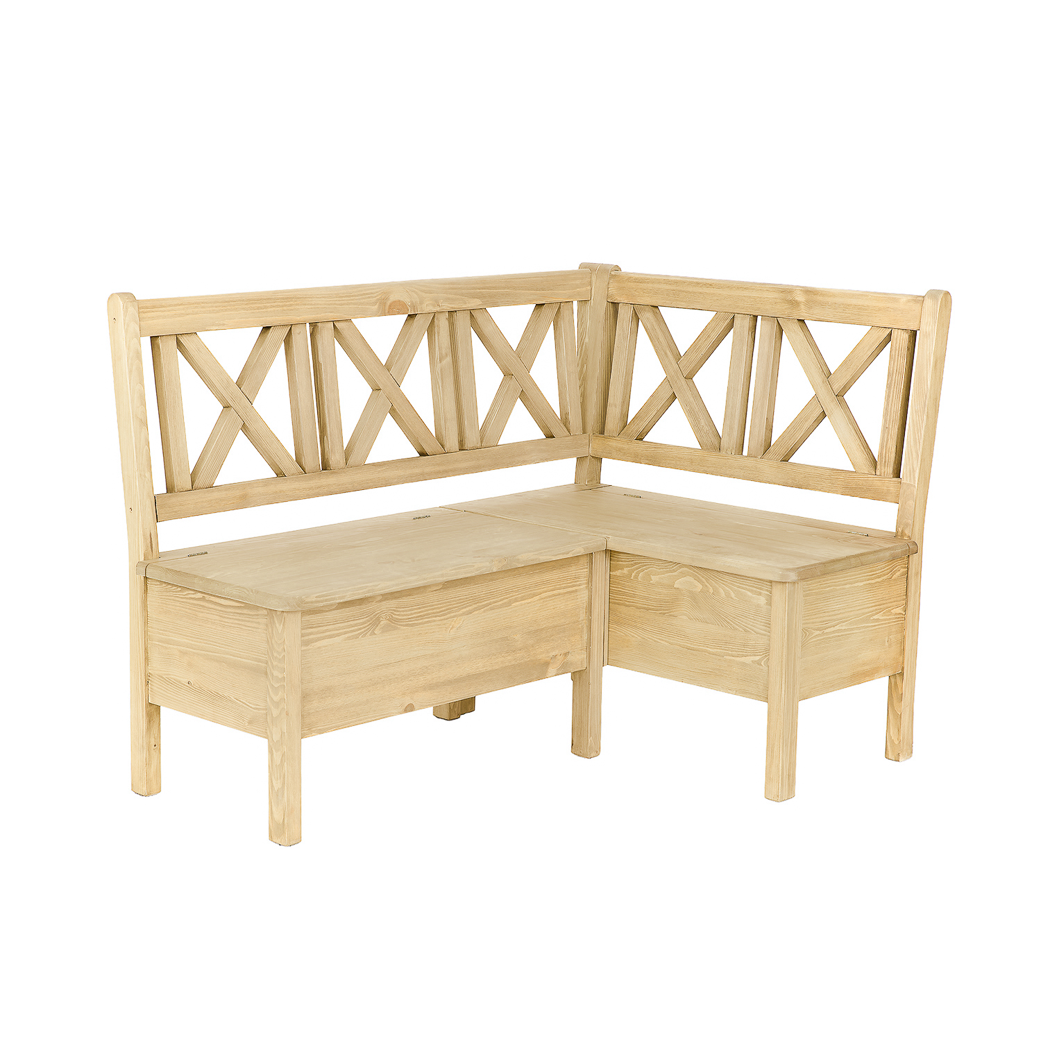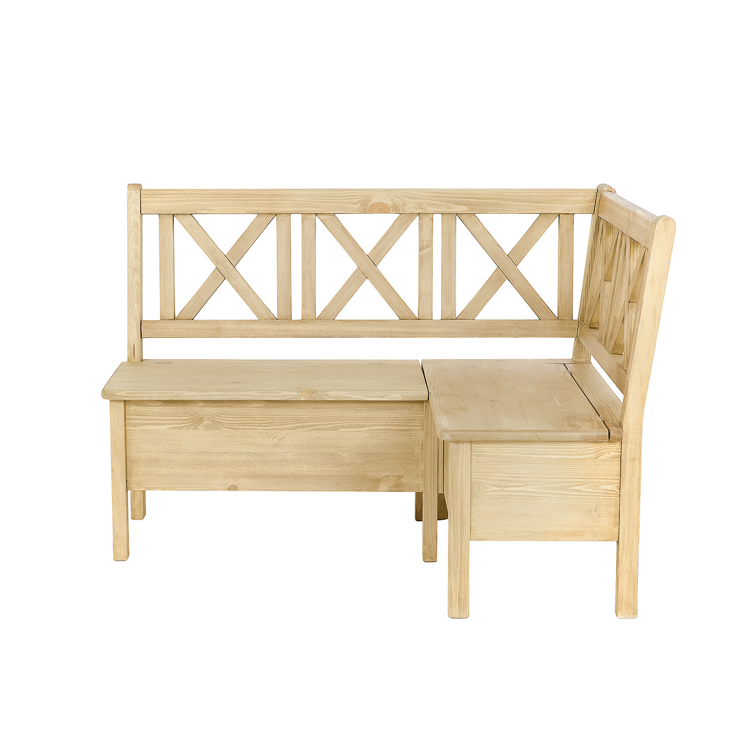 NR704 vaškuotas kampinis suolas. Sukurtas kaimiško stiliaus, jis pagamintas vien iš tvirtos pušies medienos. Jis pasižymi unikaliu kryžiaus formos atlošu ir atidaroma sėdyne su erdviu daiktadėže. Šis praktiškas daiktadėžės skyrius gali būti naudojamas būtiniausiems daiktams laikyti. NR704 kampinis suolas yra išskirtinai funkcionalus baldas, kuris gali pakeisti kėdes ir prie stalo susodinti dar daugiau žmonių. Jis puikiai tinka ne tik namų virtuvei, bet ir prieškambariui ar terasai. Jis suteiks bet kuriai erdvei unikalią atmosferą, kupiną šilumos ir jaukios atmosferos.