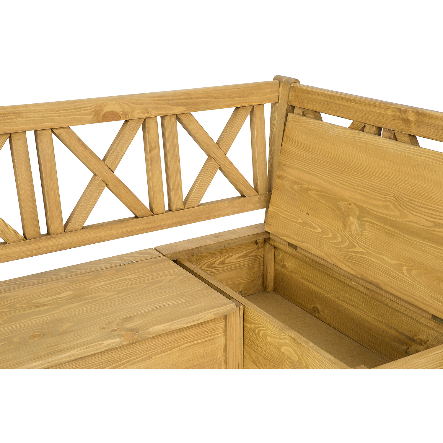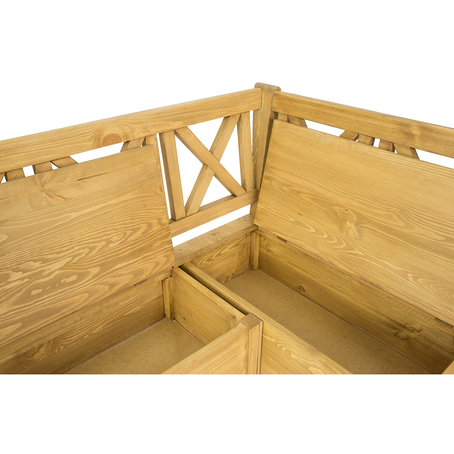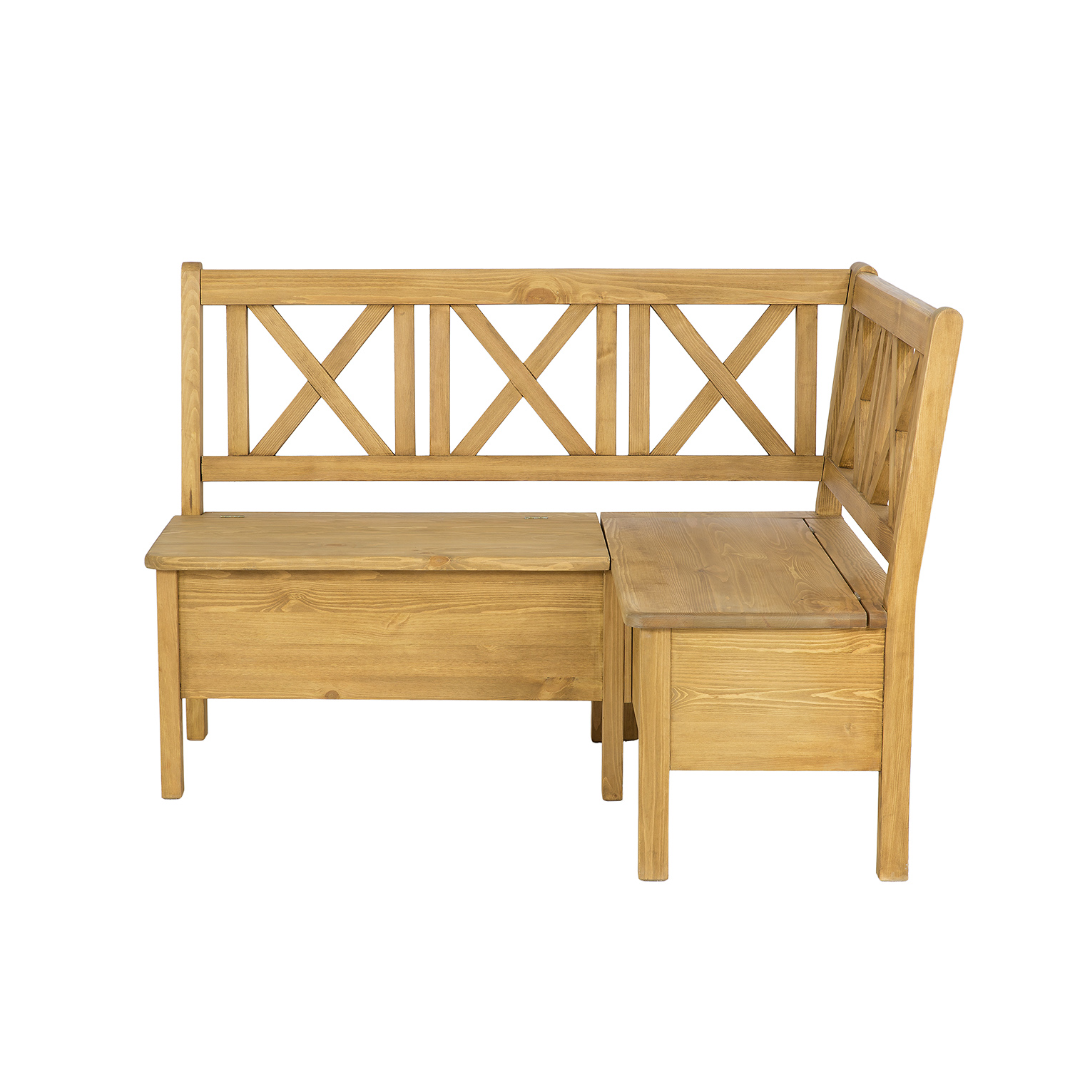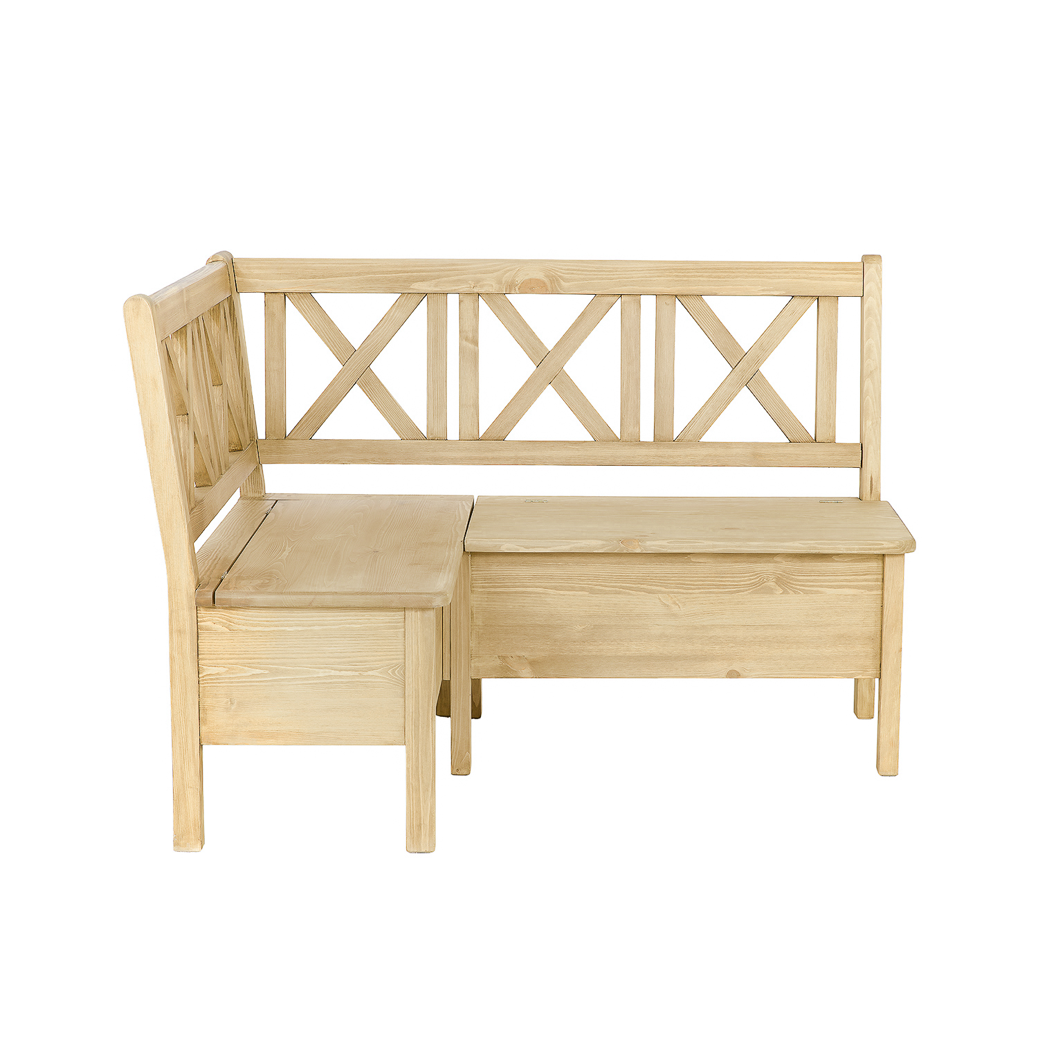 NR704 vaškuotas kampinis suolas. Sukurtas kaimiško stiliaus, jis pagamintas vien iš tvirtos pušies medienos. Jis pasižymi unikaliu kryžiaus formos atlošu ir atidaroma sėdyne su erdviu daiktadėže. Šis praktiškas daiktadėžės skyrius gali būti naudojamas būtiniausiems daiktams laikyti. NR704 kampinis suolas yra išskirtinai funkcionalus baldas, kuris gali pakeisti kėdes ir prie stalo susodinti dar daugiau žmonių. Jis puikiai tinka ne tik namų virtuvei, bet ir prieškambariui ar terasai. Jis suteiks bet kuriai erdvei unikalią atmosferą, kupiną šilumos ir jaukios atmosferos.