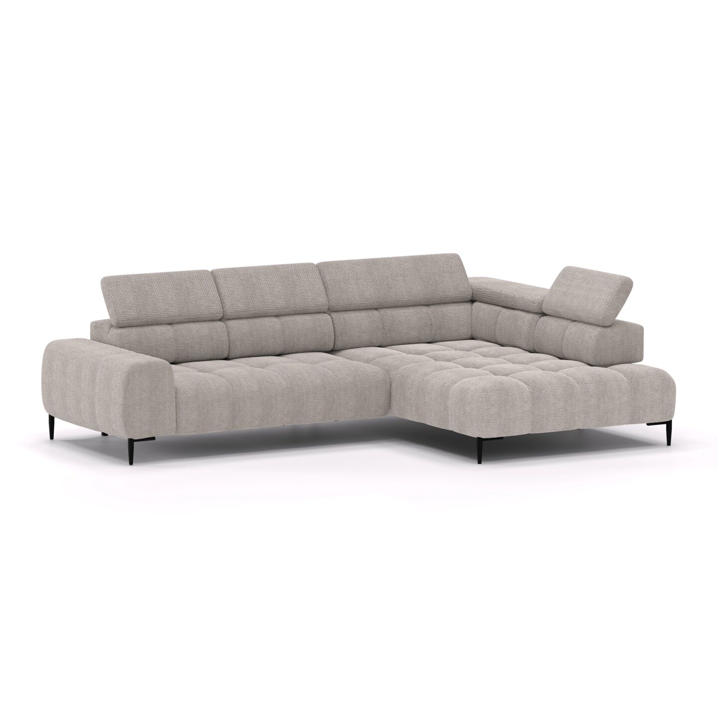 PLAZA L kampinė sofa – tai elegantiškas, modernaus charakterio baldas, sukurtas atsižvelgiant į komfortą ir funkcionalumą. Ji turi elektra valdomą sėdynę, slankiojančią atlošą ir reguliuojamas galvos atramas (5 dalys), kurios leidžia puikiai pritaikyti sėdėjimo padėtį pagal individualius poreikius. Pušies medienos ir MDF konstrukcija, A formos spyruoklės ir N30 putplastis užtikrina patvarumą ir komfortą, o 15 cm metalinės kojelės suteikia lengvumo ir elegancijos.
