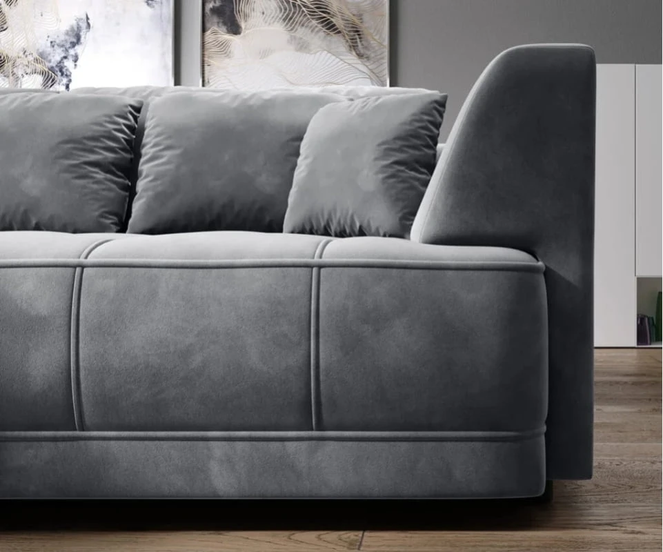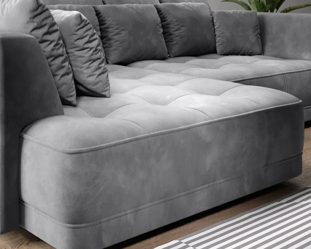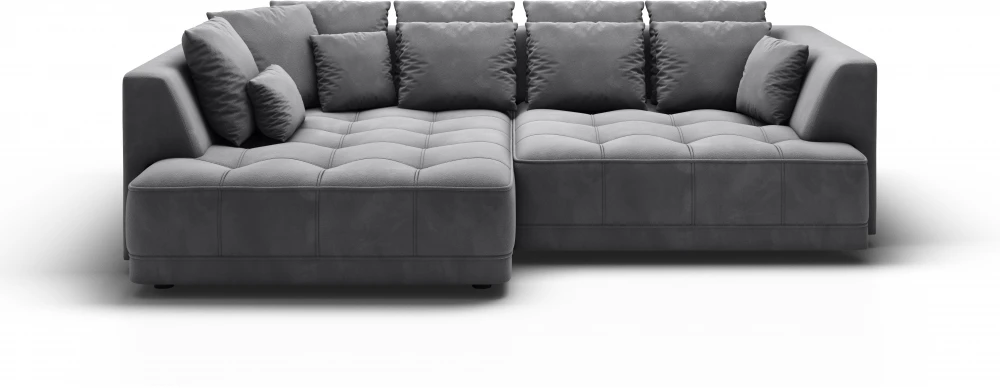 „Tiga“ kampinė sofa – tai išskirtinai didelis ir patogus modelis su erdvia sėdimąja dalimi su dekoratyvinėmis detalėmis, kviečiančiomis atsipalaiduoti ir pailsėti. Dygsniuota sėdynė aprūpinta daugybe dekoratyvinių užtrauktukais užsegamų pagalvėlių. Šis modelis neturi įprastos miegojimo funkcijos, tačiau elektra ištraukiama sėdynė sukuria erdvę nakties poilsiui. Išskleista sofa sukuria 125 × 220 cm erdvę. Sėdynė užpildyta A tipo banguotomis spyruoklėmis, N30 poliuretano putomis ir elastine juosmens juosta. Atlošas užpildytas T21 poliuretano putomis ir elastine juosmens juosta. Kojelės pagamintos iš juodo plastiko, 5 cm aukščio. Galima įsigyti kairės ir dešinės rankų versijas.