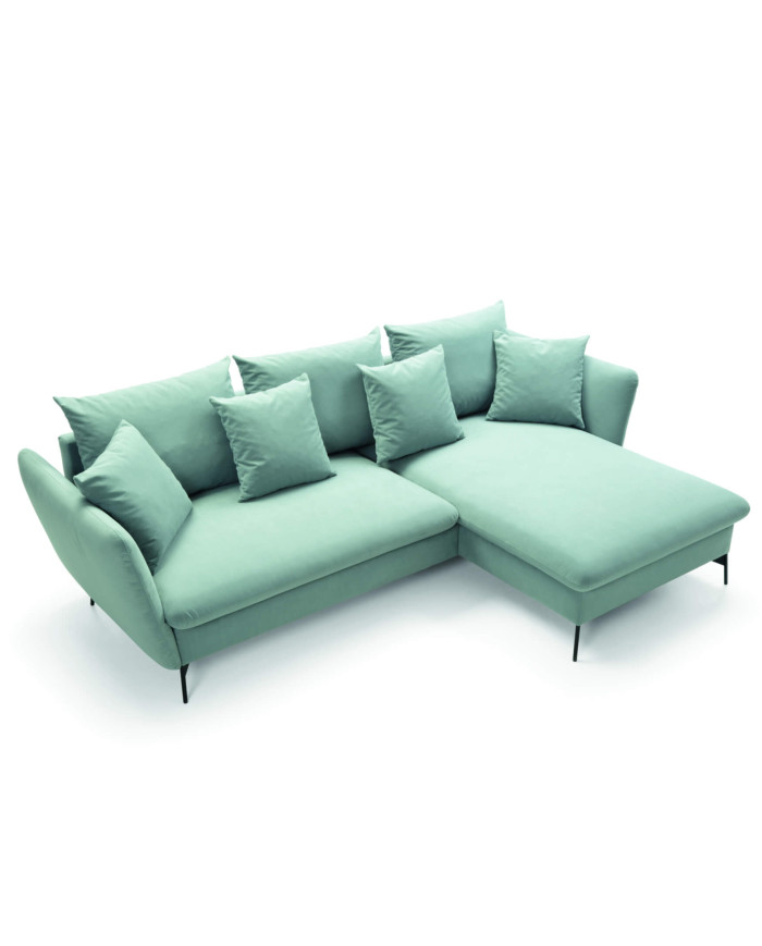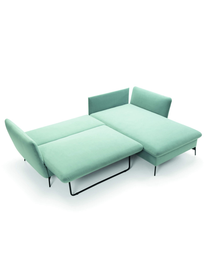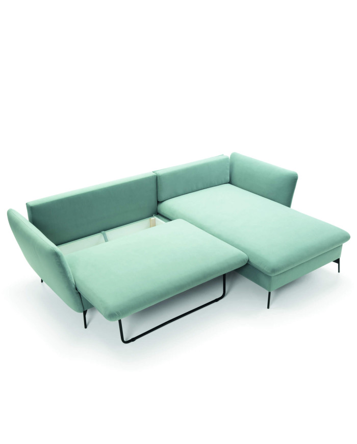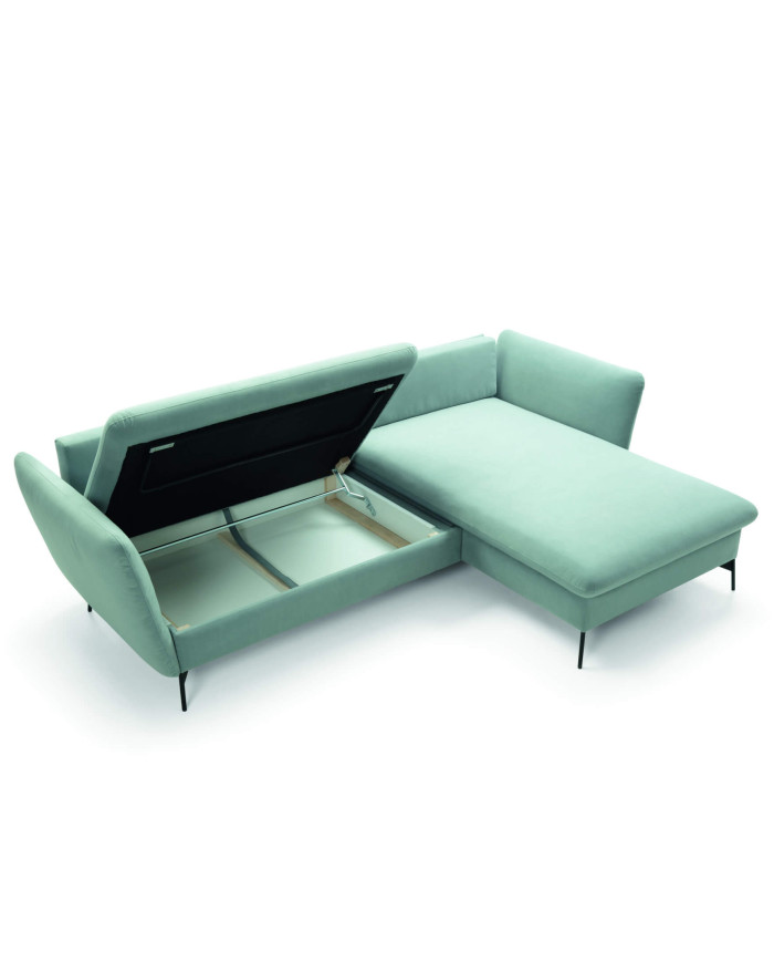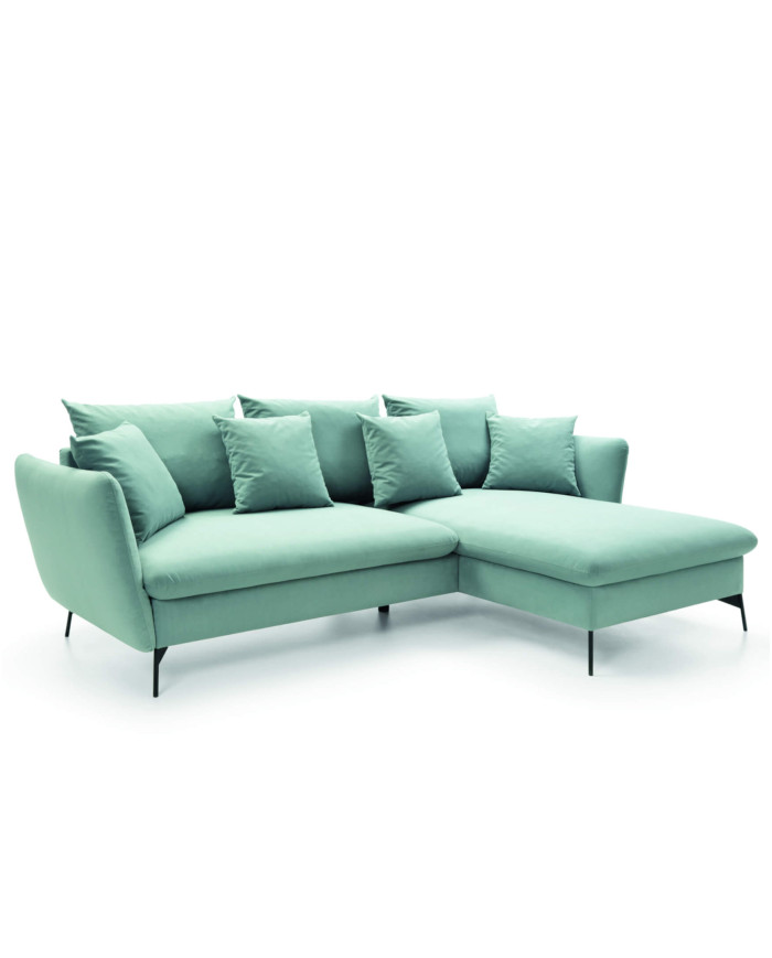 Unikali „Viton“ kampinė sofa-lova traukia dėmesį savo gražiu, moderniu stiliumi, kurį sušvelnina klasiškai išdėstytas atlošas ir dekoratyvinės pagalvėlės. Šis baldas puikiai derės prie bet kokio interjero – nuo klasikinio iki modernaus. Dekoratyviniu audiniu aptrauktas atlošas leidžia sofą pastatyti bet kokiu atstumu nuo sienos, atverdamas papildomas dizaino galimybes tiek interjerui, tiek patiems baldams. Kampinėje sofoje yra DL dieninė miegamoji dalis, kuri greitai ir lengvai paverčia patogią sofą erdvia vieta poilsiui tiek naktį, tiek dieną. Erdvioje ir labai praktiškoje patalynės dėžėje taip pat telpa papildomos antklodės, pagalvės ir užtiesalai. Komplektas stovi ant stabilių, aukštų (15 cm) juodų kojelių ir pristatomas su minimaliu surinkimu. Jis tiekiamas dešininės ir kairės pusės versijomis ir yra pagamintas iš plataus audinių asortimento. Apmušalų audinių pavyzdžius galite rasti „Product Creator“ svetainėje.