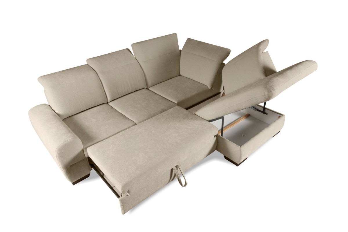 Palyginti „Fluenso“ kampinė sofa su reguliuojamais galvos atlošais yra įdomus pasirinkimas moderniam interjerui.