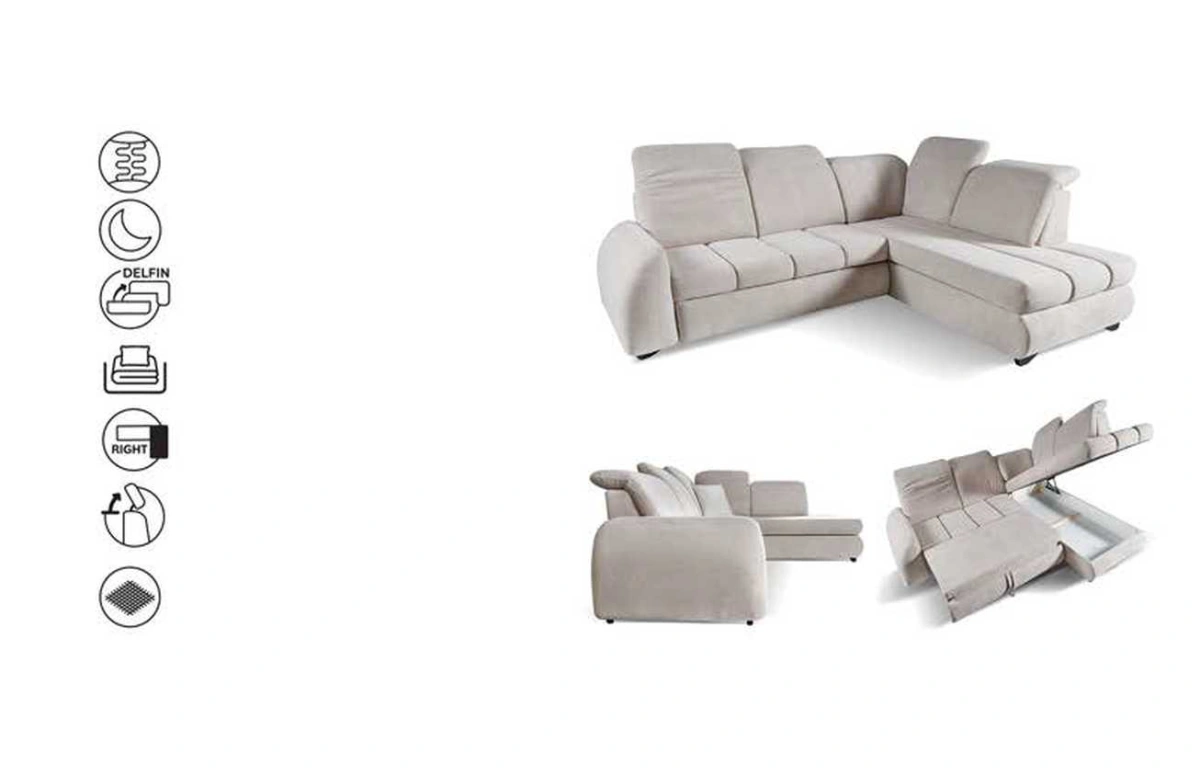 Ši kampinė sofa galima įsigyti tik su „Gerra 15“ audiniu – smėlio spalvos.