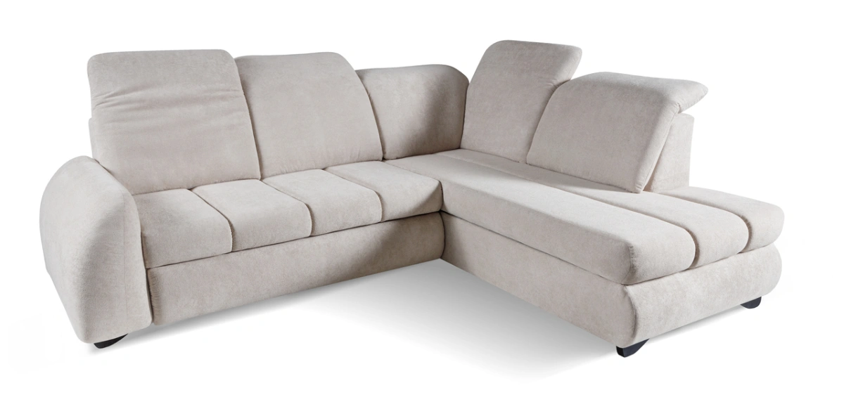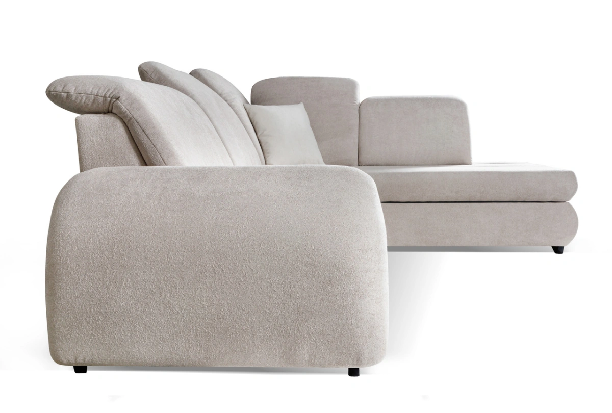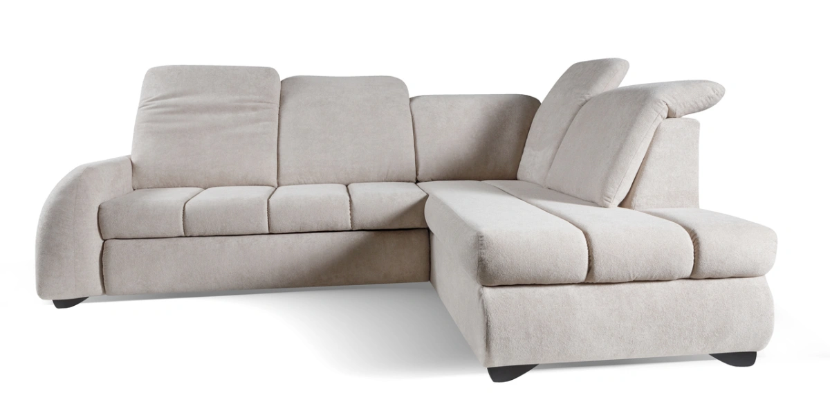 Palyginti „Onna“ kampinė sofa su reguliuojamais galvos atlošais yra įdomus pasirinkimas moderniam interjerui.