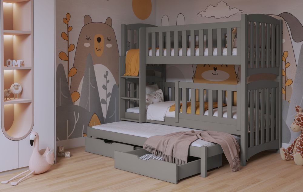 NATHAN III trivietė dviaukštė lova su stalčiais 90×200 cm
