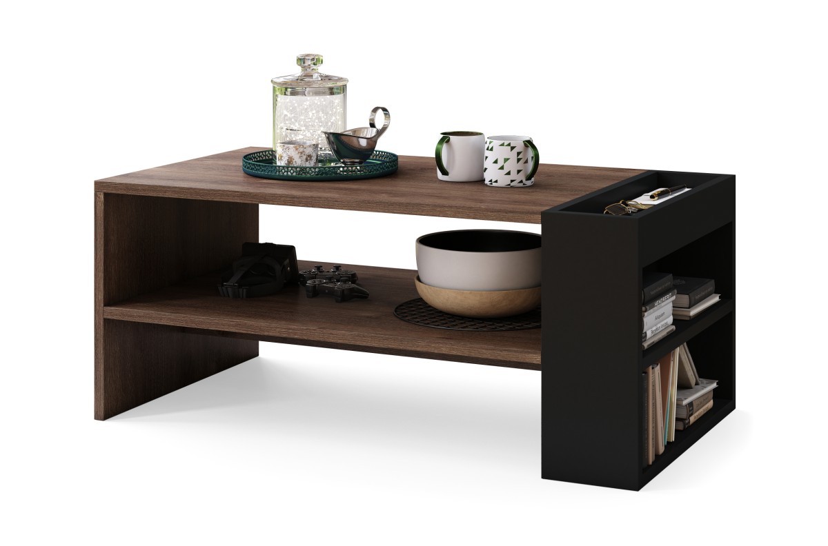 NEFRI rudas ąžuolas/matinė juoda – MODERNUS KAVOS STALIUKAS SU LENTYNA