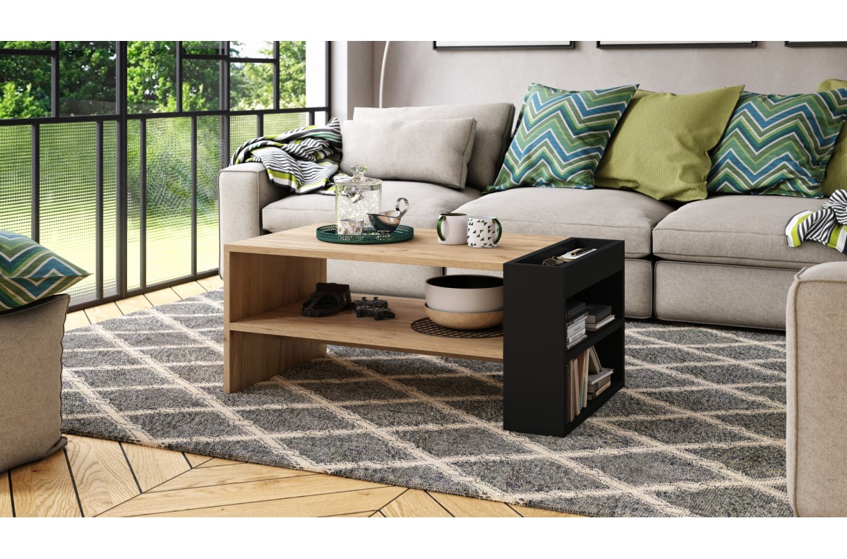 NEFRI Craft ąžuolo aukso/matinės juodos spalvos – MODERNUS KAVOS STALIUKAS SU LENTYNA