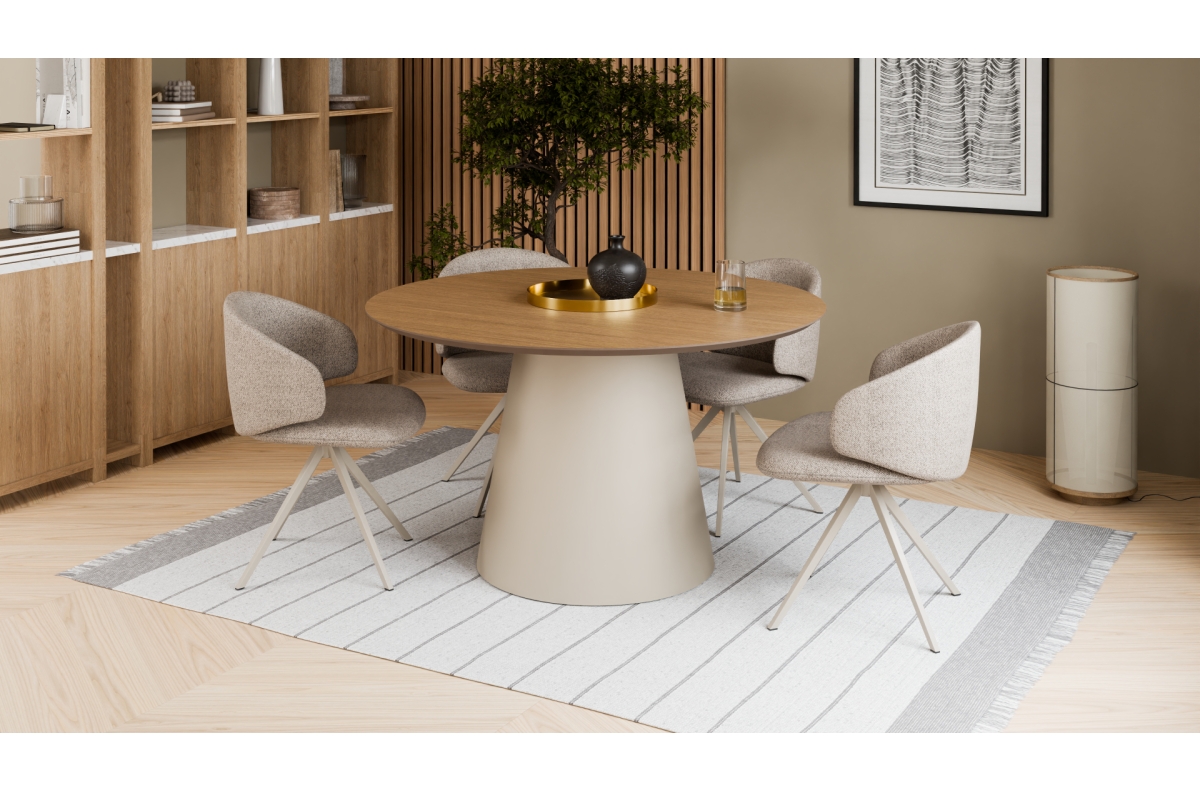 NELA sukamoji kėdė apjungia komfortą, FUNKCIONALUMĄ ir modernų dizainą. Jos apvali sėdynė ir atlošas yra ergonomiškai suprojektuoti, užtikrinantys patogią nugaros atramą ir didelį komfortą. Apmušalai pagaminti iš itin patvaraus ir lengvai prižiūrimo audinio, atsparaus trinčiai ir dėmėms, užtikrinančio ilgalaikį naudojimą.