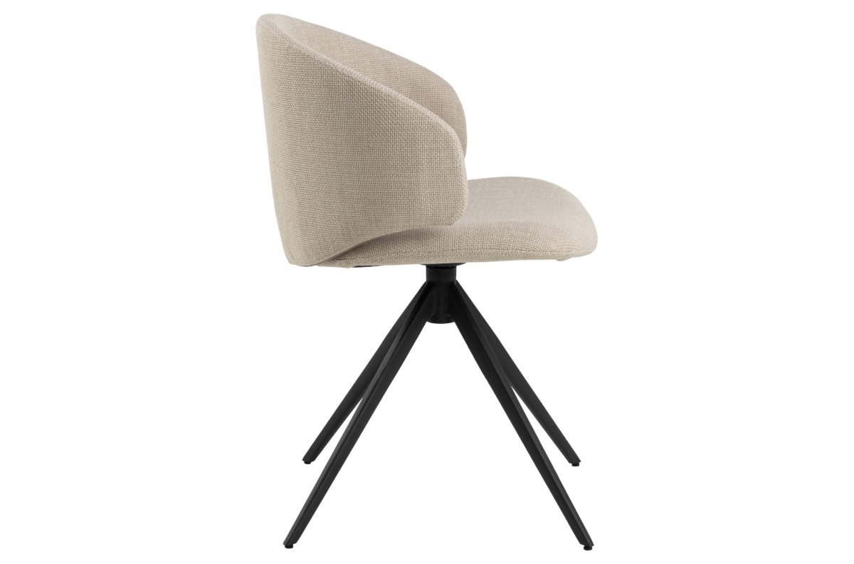 NELA smėlio spalvos (Basel 24 audinys) / juodos kojelės – MODERNI SUKAMA KĖDĖ, APMUŠTA PYNIMO SIŪLAIS, VIRTUVEI, SVETAINEI, BOHO STILIAUS