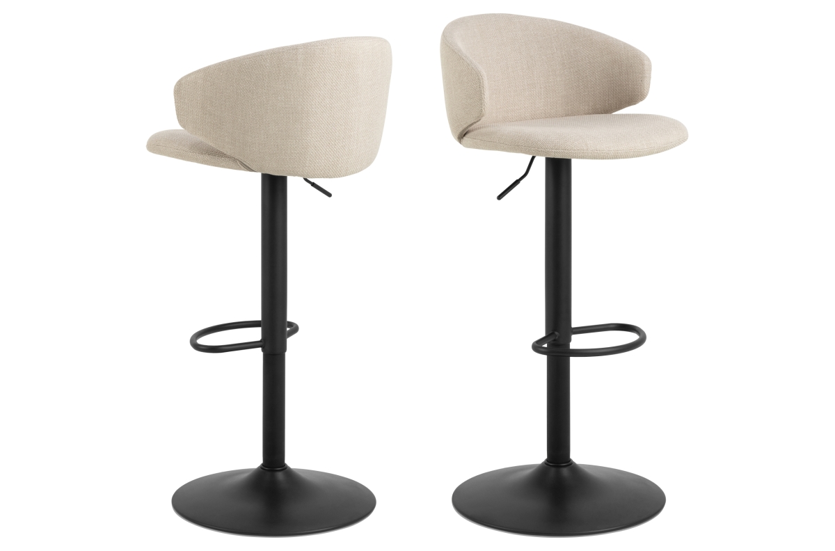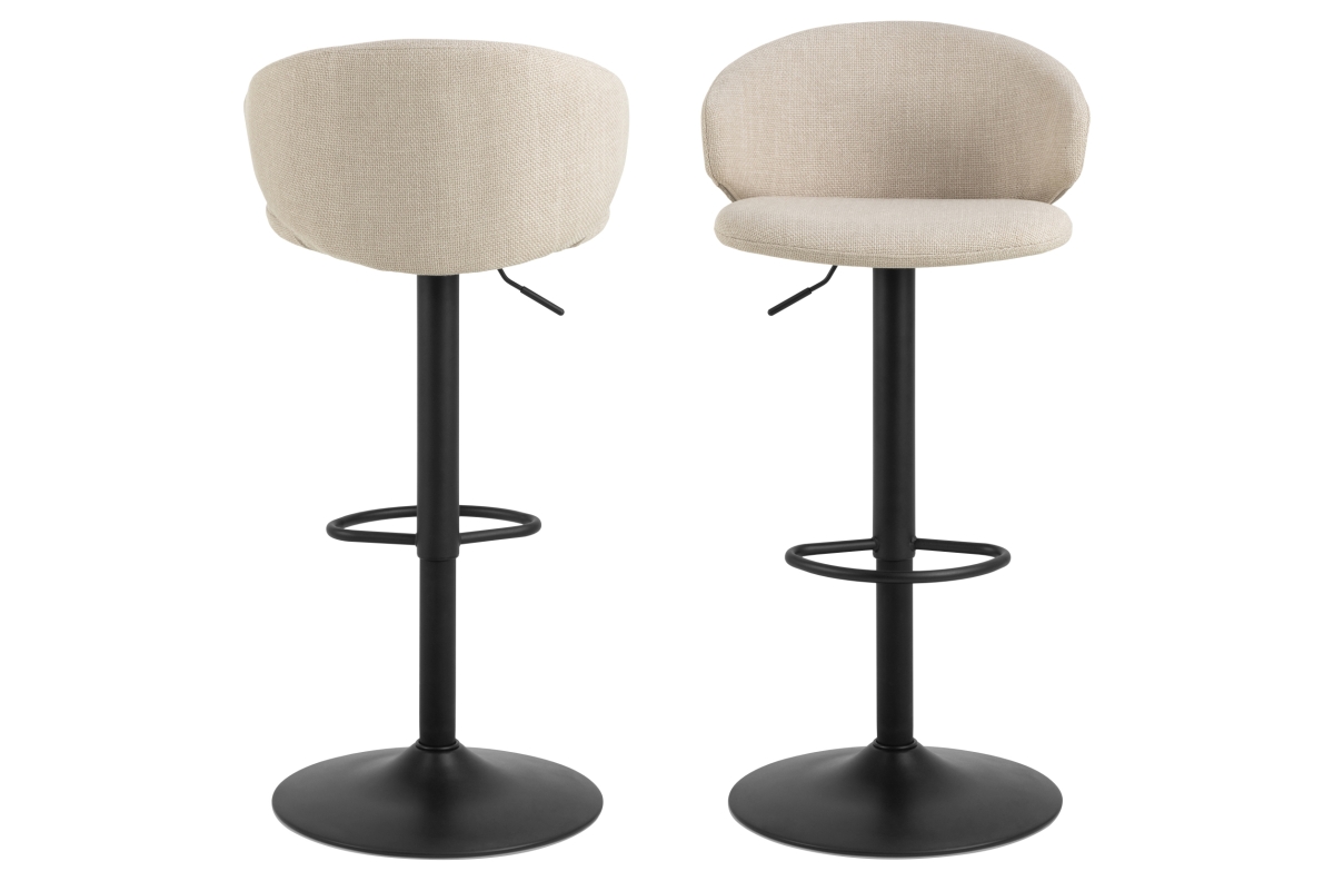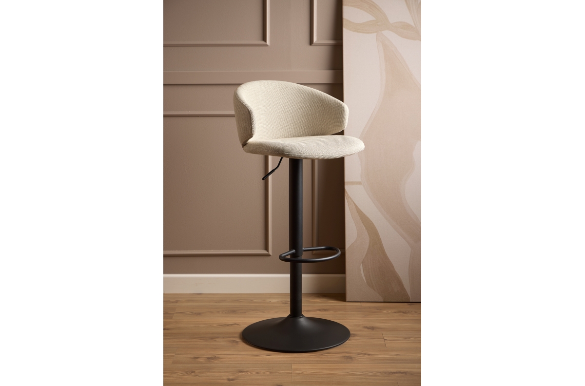 NELA smėlio spalvos (Basel 24 audinys) / juoda koja – Apmuštas besisukantis baro krėslas virtuvei, svetainei, restoranui