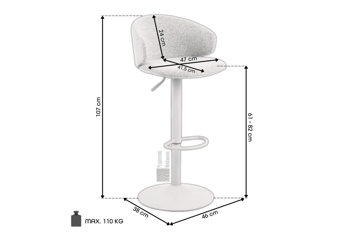 MEDŽIAGOS „Basel“ audinys / milteliniu būdu dažytas plienas, FUNKCIJA 360° pasukamas pagrindas Reguliuojama sėdynė, AUKŠTIS, STILIUS Modernus / Loftas, KITA Gaminys skirtas savarankiškam surinkimui su pateiktomis instrukcijomis MAKSIMALI APKROVA 110 kg