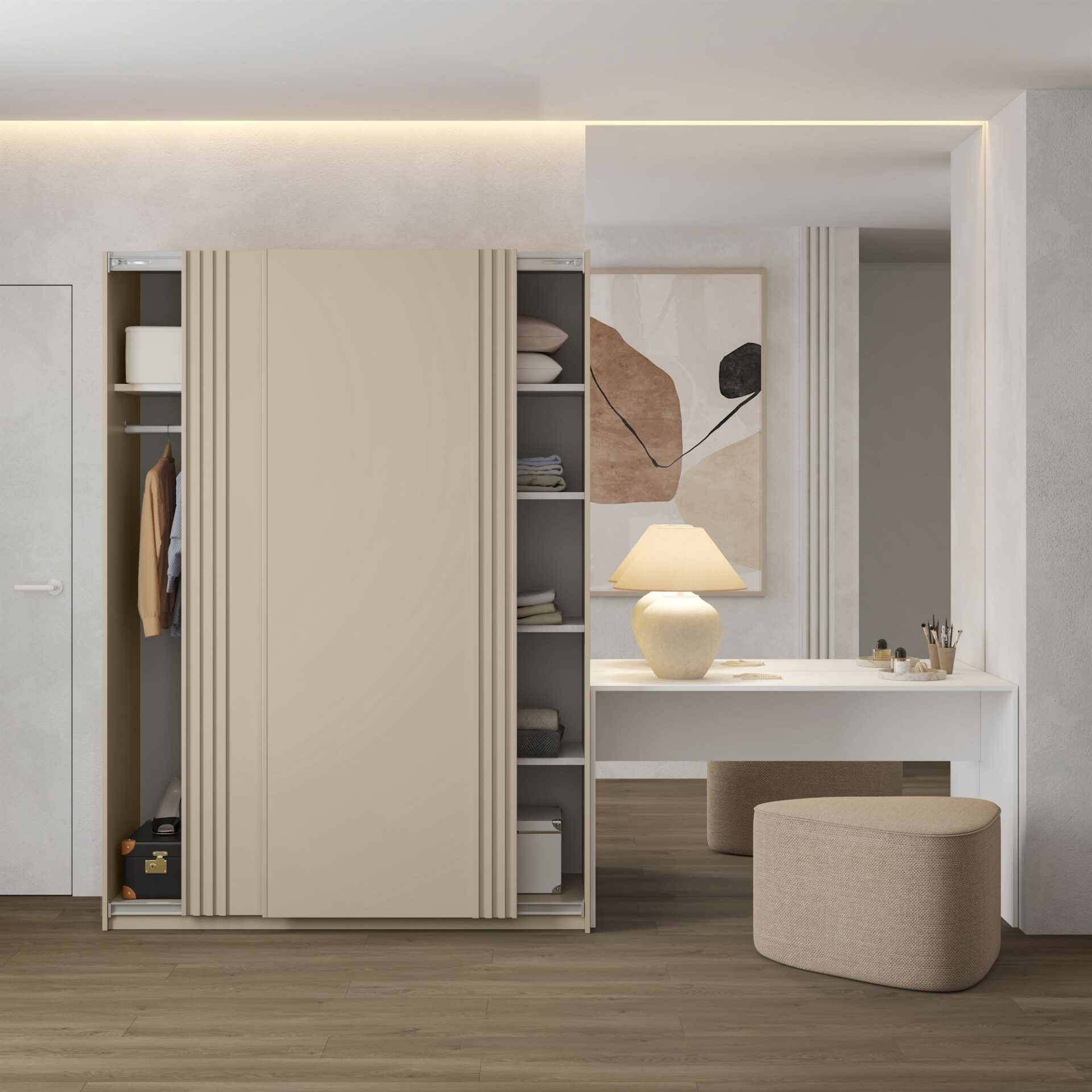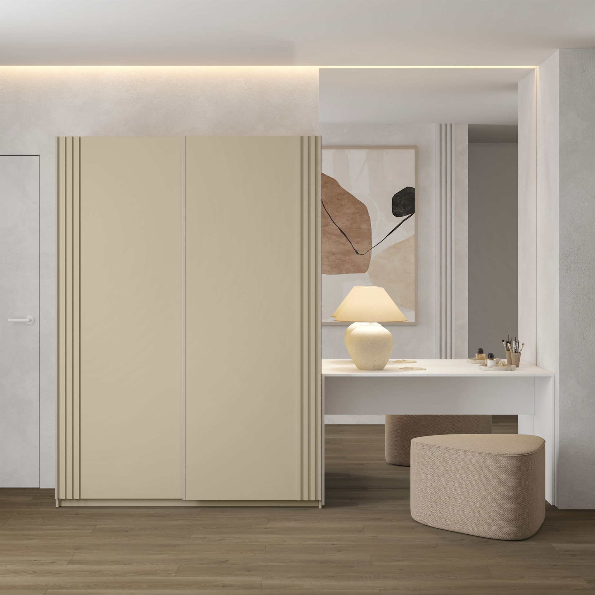 „Niva“ – dviejų durų stumdoma spinta – puikus sprendimas visiems, kurie vertina eleganciją ir funkcionalumą savo interjere. Šis stilingas 150 cm pločio ir 210 cm aukščio baldas žavi savo smėlio atspalviu ir puikiai dera prie įvairių interjerų – nuo modernaus iki klasikinio. Grotelės suteikia spintai unikalumo ir paverčia ją ne tik praktišku baldu, bet ir patrauklia jūsų kambario puošmena. Nesvarbu, ar norite sutvarkyti savo miegamąjį, persirengimo kambarį, ar prieškambarį, „Niva“ spinta garantuoja optimalų erdvės išnaudojimą. Stumdomos durys taupo vertingą erdvę, nes nereikia papildomos vietos durims atidaryti. Tai leidžia jums susitvarkyti kambarį pagal savo pageidavimus, net ir mažesniuose kambariuose. Pagaminta iš aukštos kokybės laminuotos plokštės, „Niva“ spinta derina estetiką ir ilgaamžiškumą. Tvirta konstrukcija užtikrina ilgalaikį naudojimą, todėl tai yra investicija ilgus metus. To paties atspalvio metalinės rankenos harmoningai dera su visa forma, suteikdamos baldui elegantišką apdailą.