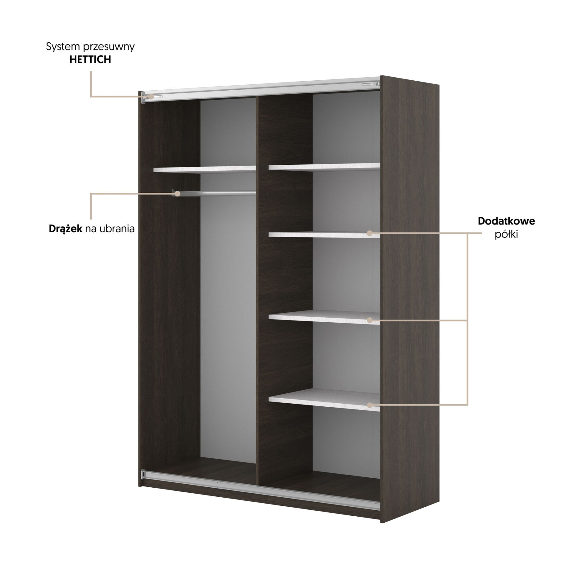 Atraskite tobulą daiktų laikymo būdą su „Niva“ spinta su dviem stumdomomis durimis, kurioje dera rafinuotas stilius ir funkcionalumas. 150 cm plotis leidžia jai puikiai įsilieti į bet kurį jūsų interjero kampelį, suteikdamas elegancijos ir modernumo. „Dunin Oak“ spalvų gama ir matinės juodos rankenos – tobulas derinys, suteikiantis spintai nesenstantį charakterį. Šios spintos dizainas sukurtas tiems, kurie vertina ir estetiką, ir praktiškumą. Stumdomos durys – puikus sprendimas, taupantis erdvę ir palengvinantis prieigą prie jūsų daiktų. Ne tik sutaupysite papildomų kvadratinių metrų, bet ir sukursite harmoningą erdvę, kuri skatins poilsį ir atsipalaidavimą. „Niva“ spinta taps jūsų kambario traukos centru, pritraukdama visų svečių dėmesį. Aukštos kokybės medžiagos, iš kurių pagaminta spinta, garantuoja jos patvarumą ir atsparumą kasdieniam naudojimui. Laminuota plokštė užtikrina ne tik estetišką išvaizdą, bet ir lengvą priežiūrą, o tai ypač svarbu intensyviai naudojamuose kambariuose. Jūsų dėka spintos surinkimas taps malonumu – visi reikalingi priedai yra komplekte, taupant jūsų laiką ir energiją.