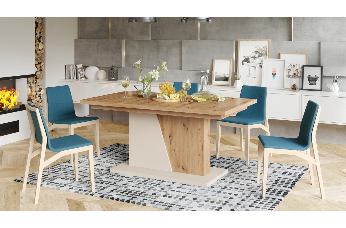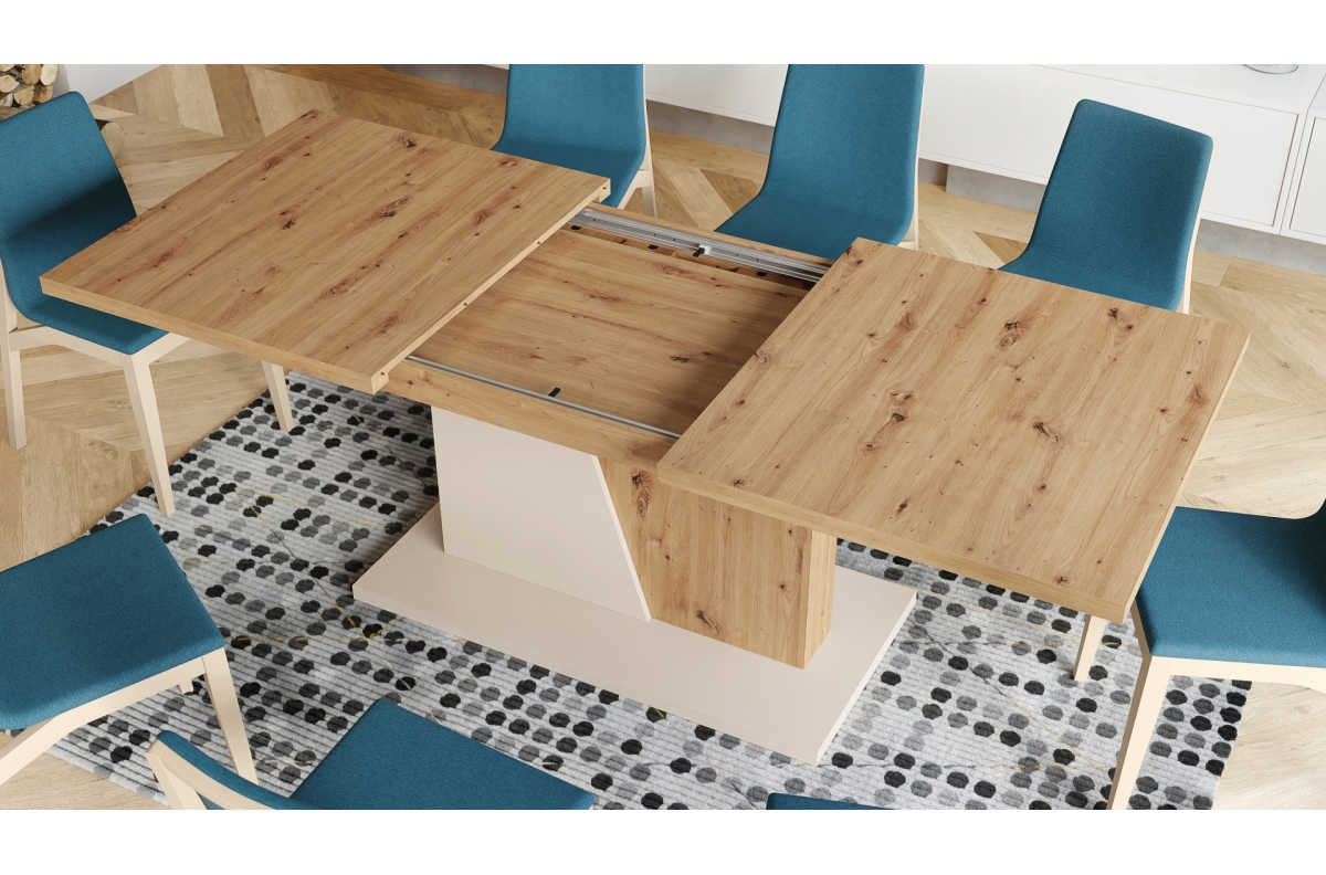 NOBLE NOIR Artisan Oak/Beige (Champagne) – IKI 218 cm IŠPLĖSTAMASIS STALAS!