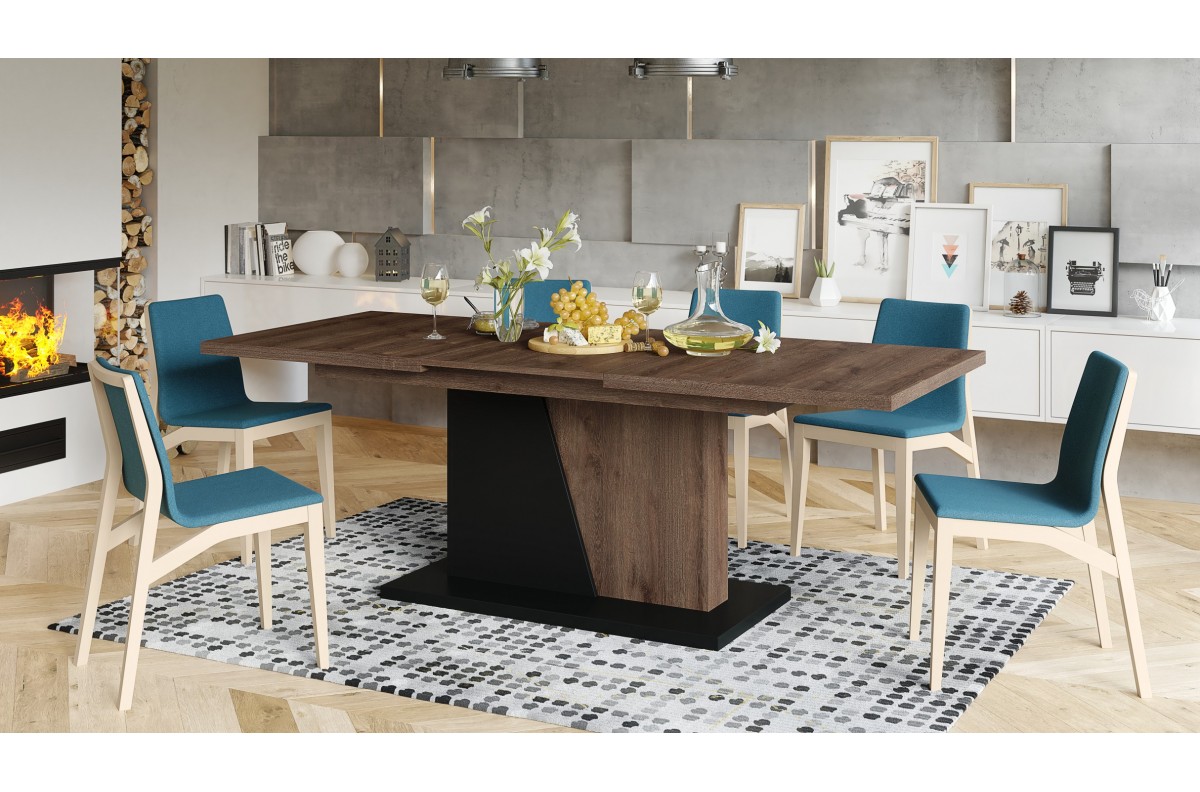 NOBLE NOIR rudo ąžuolo / matinės juodos spalvos – IKI 218 cm prailginamas stalas!