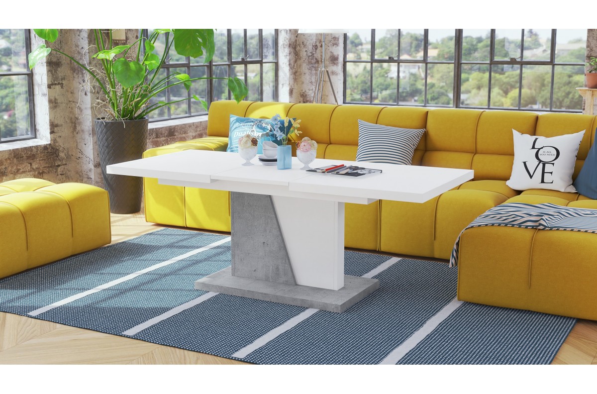 PLOTIS 120 cm / 160 cm, GYLIS 70 cm, AUKŠTIS 60 cm, ĮDĖKLŲ SKAIČIUS 1 vnt. x 40 cm (paslėpta po stalviršiu), MEDŽIAGOS Medžio drožlių plokštė, FUNKCIJA Ištraukiamas stalviršis, PAVIRŠIUS Matinis, STILIUS Modernus, SVORIS SU PAKUOTE 44 kg