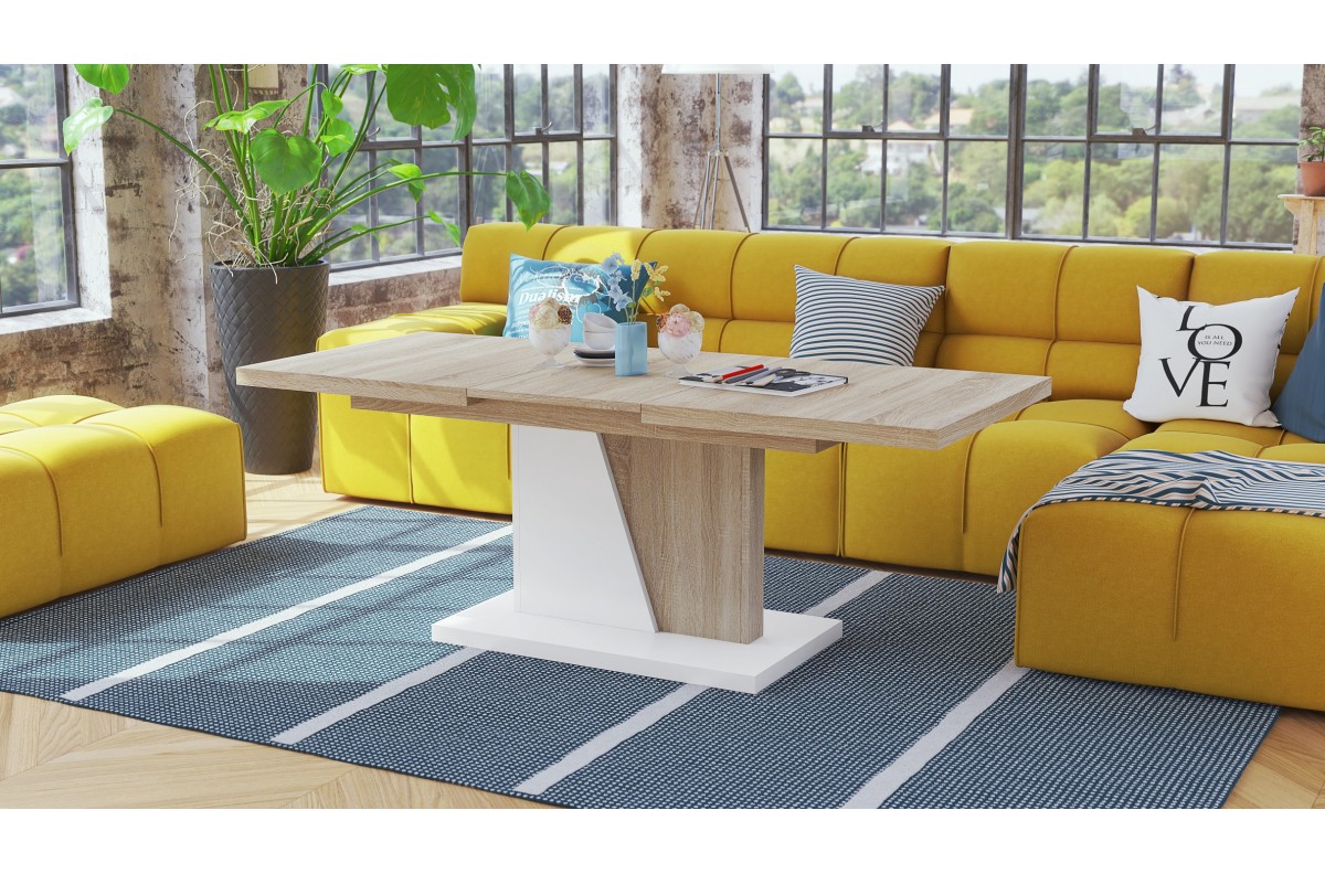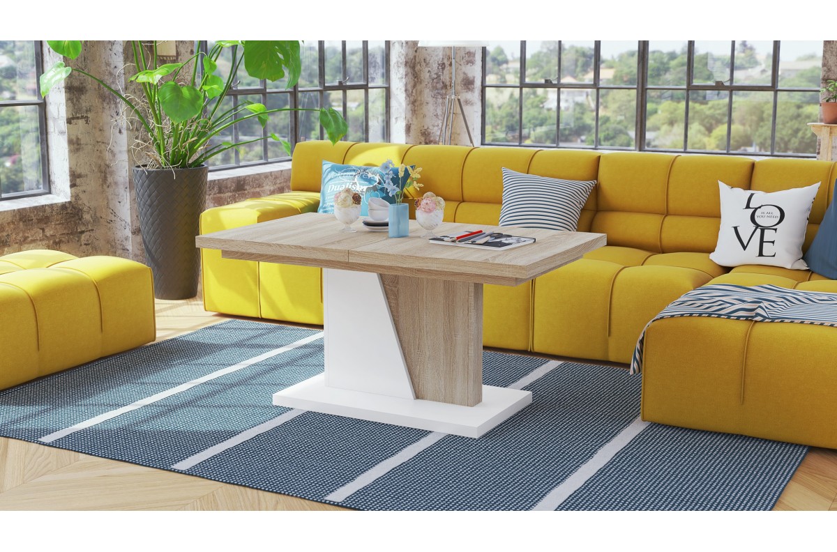 NOIR Sonoma ąžuolas/matinė balta – MODERNUS SULANKSTOMAS SUOLAS SVETAINEI