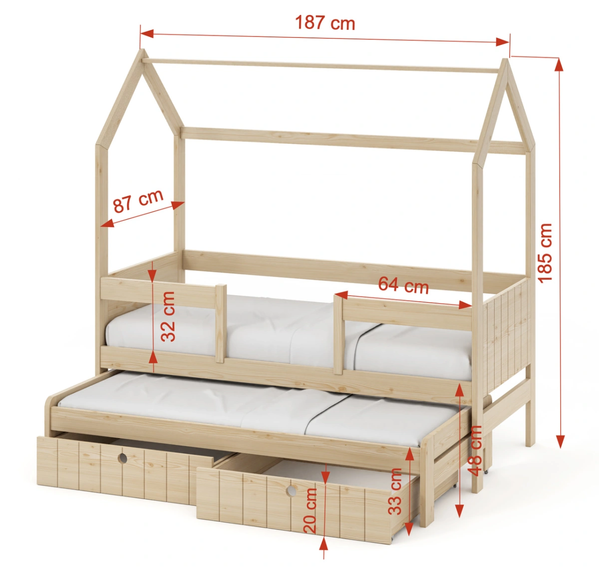 Projektuodami lovą, daugiausia dėmesio skyrėme ne tik saugumui, bet ir funkcionalumui bei estetikai. Pušis yra ideali medžiaga, atitinkanti visus šiuos reikalavimus. Šios medžiagos patvarumas yra itin svarbus dirbant su aukštomis lovomis. Šios konstrukcijos gali būti pavojingos, todėl naudojamos medžiagos kokybė yra labai svarbi, į kurią skiriame ypatingą dėmesį ir atidžiai stebime gamybos procesą kiekviename etape.