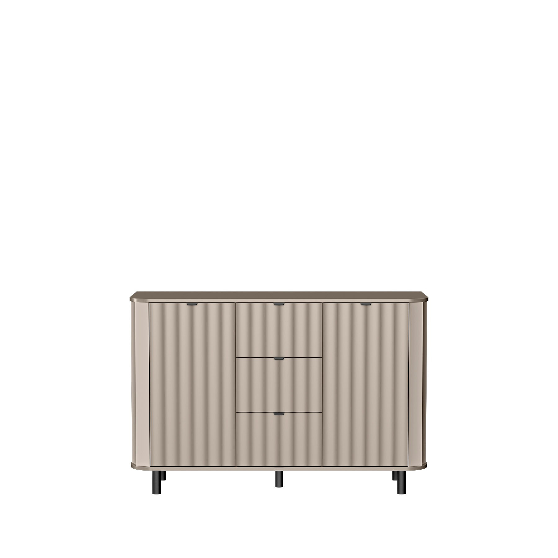 Pilkos spalvos NOVADO-1 komoda – tai harmoningas modernumo ir klasikinės elegancijos derinys, papildantis bet kokį interjerą. Minimalistinis dizainas ir prislopintos spalvos puikiai tinka tiek svetainei, tiek miegamajam. Pagaminta iš aukštos kokybės medžiagų, ji ne tik vizualiai stulbinanti, bet ir patvari, užtikrinanti ilgaamžiškumą. Išsiskirianti simetrišku dizainu, komoda turi tris erdvius stalčius centre ir dvi stilingas spinteles su lentynomis šonuose, kuriose yra daug vietos visiems jūsų daiktams susidėti. Ji idealiai tinka tiek dokumentams, tiek kasdieniams aksesuarams laikyti, o tai žymiai pagerina namų tvarką. Komodos konstrukcija paremta tvirta laminuota plokšte, užtikrinančia stabilumą ir lengvą valymą. Be to, švelniai užsidarantys vyriai ir rutuliniai guoliai užtikrina komfortą, pašalindami triukšmą uždarant. Šis sprendimas pavers komodos naudojimą maloniu bet kuriuo metu.