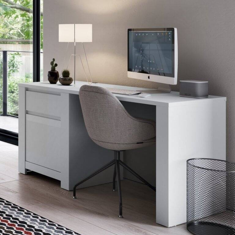 Atraskite funkcionalumą, derinantį su moderniu dizainu, su „Novi NVIB01 – 1D1S“ baltu rašomuoju stalu. Sukurtas tiems, kurie vertina minimalistinius sprendimus, eleganciją ir aukštos kokybės meistriškumą, tai puiki vieta mokytis, dirbti ar užsiimti kūryba. Stalo dizainas įkvėptas naujausių interjero dizaino tendencijų. Jo modernų stilių pabrėžia paprastos, geometrinės linijos, kurios puikiai atrodys tiek studento kambaryje, tiek namų biure. Patraukli balta apdaila suteikia interjerui lengvumo ir gaivos pojūtį. Tai daugiau nei baldas – jis papildo dinamišką erdvę. Kalbant apie praktiškumą, „Novi NVIB01“ rašomasis stalas yra nepralenkiamas. Platūs stalviršio matmenys – 130 cm pločio, 75 cm aukščio ir 60 cm gylio – suteikia patogią erdvę darbui ir mokymuisi. Stale naudojamos medžiagos, tokios kaip laminuota plokštė ir MDF, garantuoja jo patvarumą ir atsparumą kasdieniams iššūkiams, tokiems kaip įbrėžimai, drėgmei ir aukštai temperatūrai.