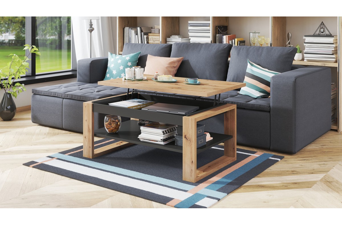 NUO Artisan Oak/Anthracite – MODERNUS KAVOS STALIUKAS SU PAKELIAMU STALVIRŠIU