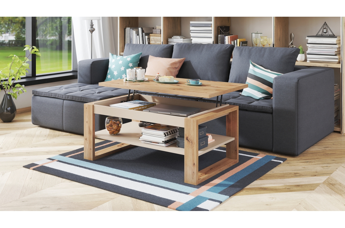 Būkite pirmas aprašęs “NUO Artisan Oak/Beige (Champagne) – MODERNUS KAVOS STALIUKAS SU PAKELIAMU STALIUKU”