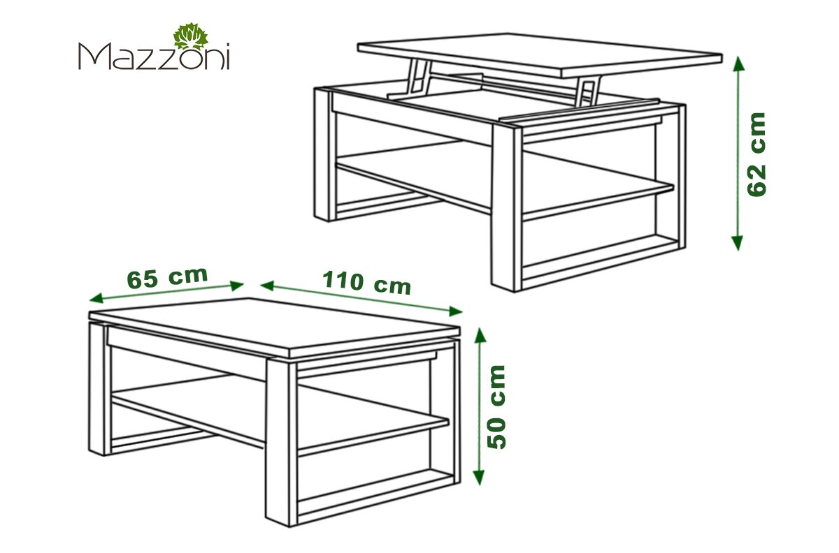 PLOTIS 110 cm, GYLIS 65 cm, AUKŠTIS 50 cm / 62 cm, MEDŽIAGOS Medžio drožlių plokštė, FUNKCIJA Ištraukiamas stalviršis (nėra, AUKŠČIO reguliavimo), PAVIRŠIUS Matinis, STILIUS Modernus, SVORIS SU PAKUOTE 42 kg