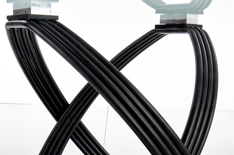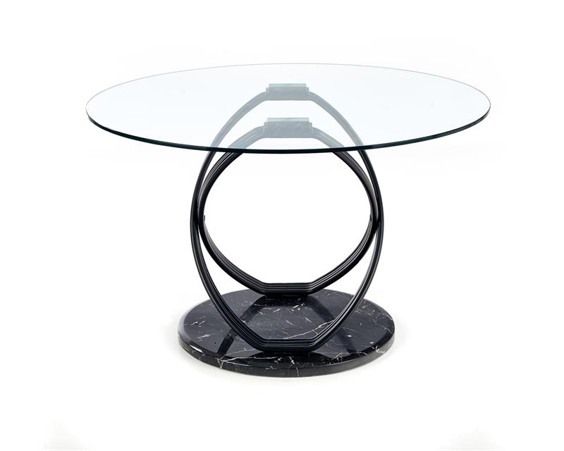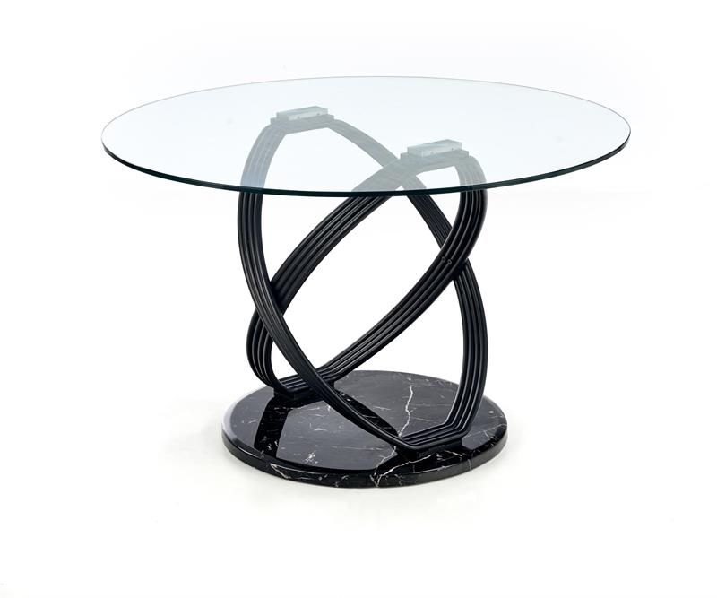 Matmenys: 122/77 cm, medžiaga: stiklas / milteliniu būdu dažytas plienas / dirbtinis akmuo, spalva: stalviršis – skaidrus, kojelės – juodos