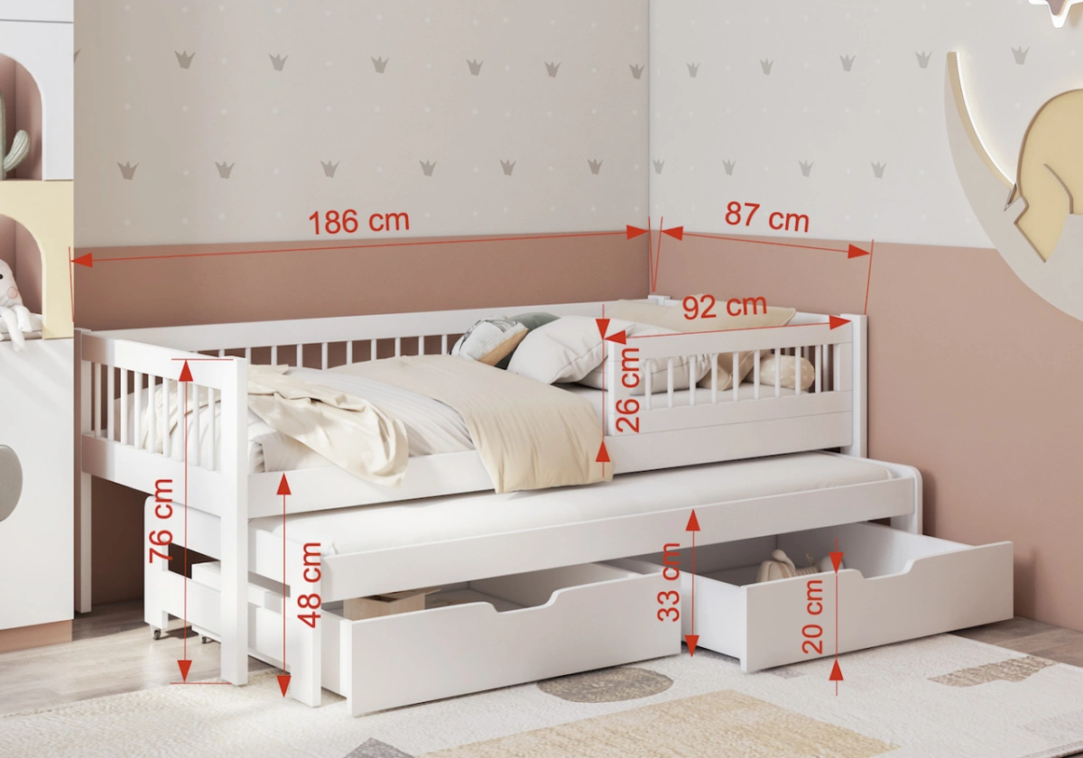 Viršutinio čiužinio miegamasis plotas: 90 x 200 cm