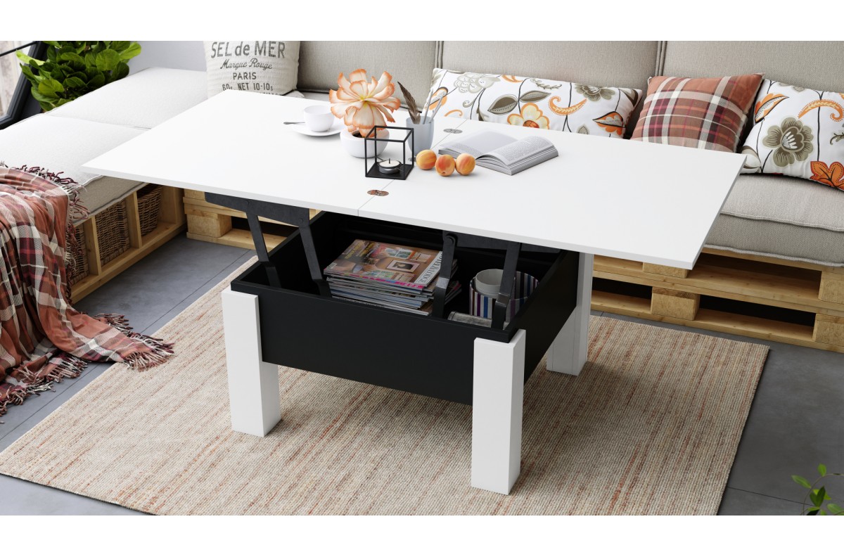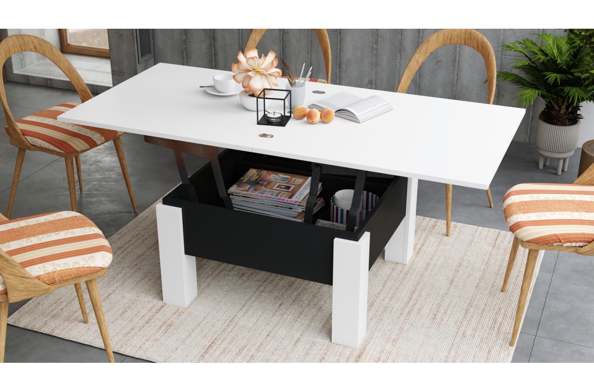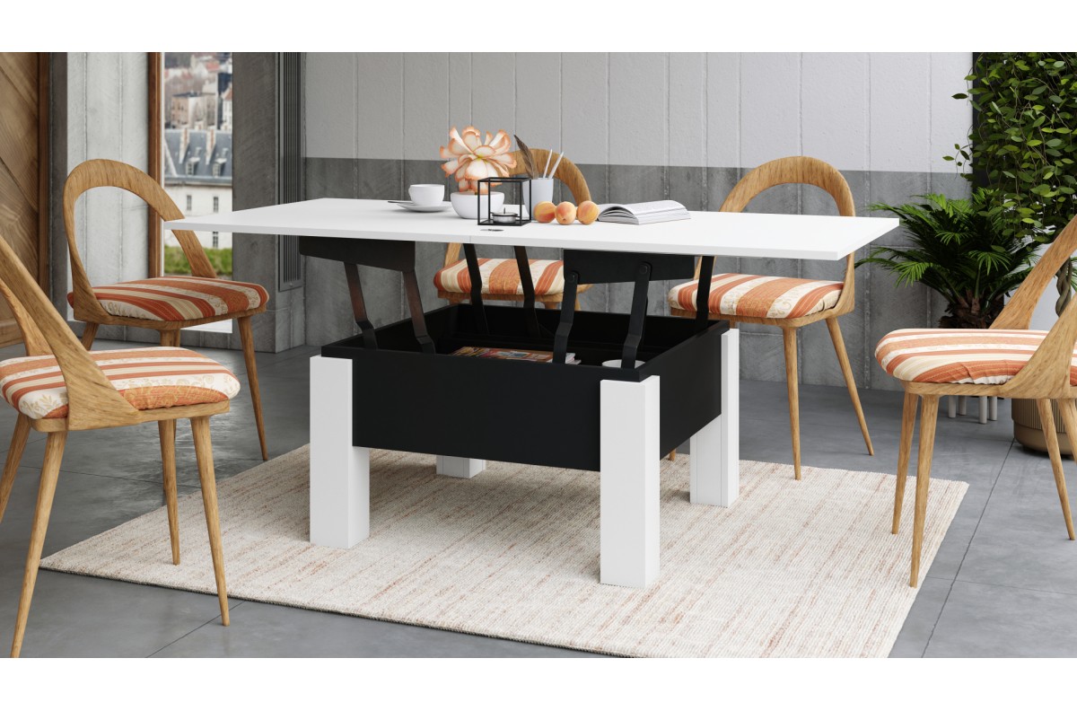 OSLO balta/juoda – SULANKSTOMAS STALAS, PAKELIAMAS STALAS, STALAS, KAVOS STALIUKAS