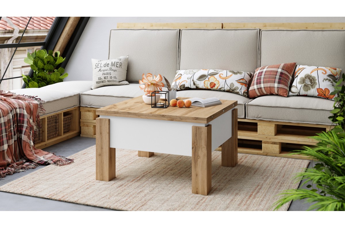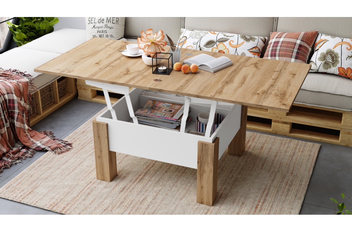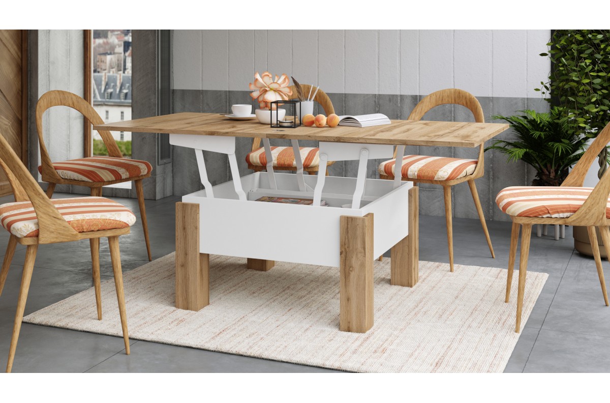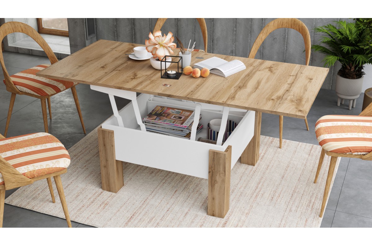 OSLO Wotan ąžuolas/baltas – SULANKSTOMAS PAKELIAMAS STALAS