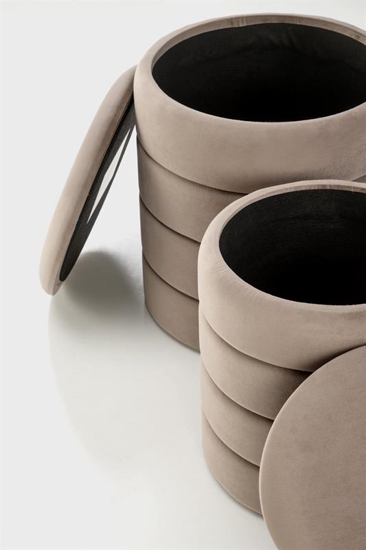 Matmenys: 40/44 cm ir 33/39 cm; dviejų dalių komplektas su daiktadėže, medžiaga: audinys – aksomas, spalva smėlio spalvos